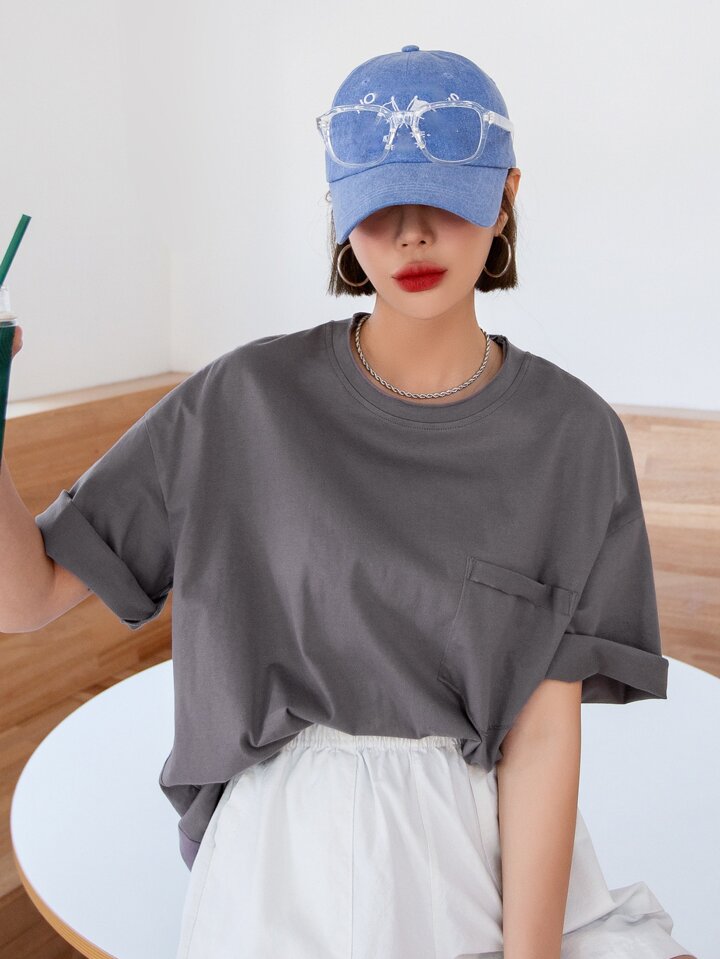 T-shirt À Épaules Tombantes Avec Poche Patchée