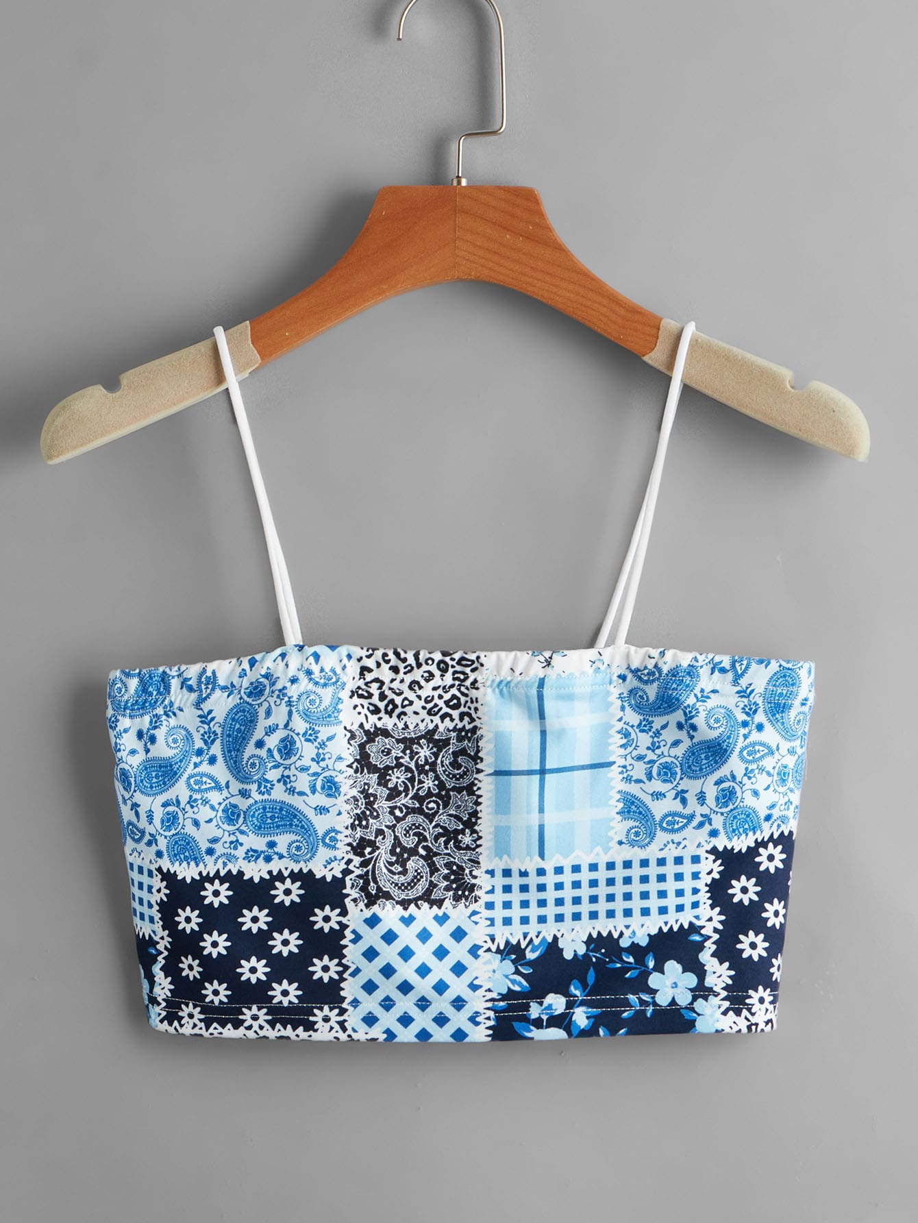Top à fines brides court avec patchwork