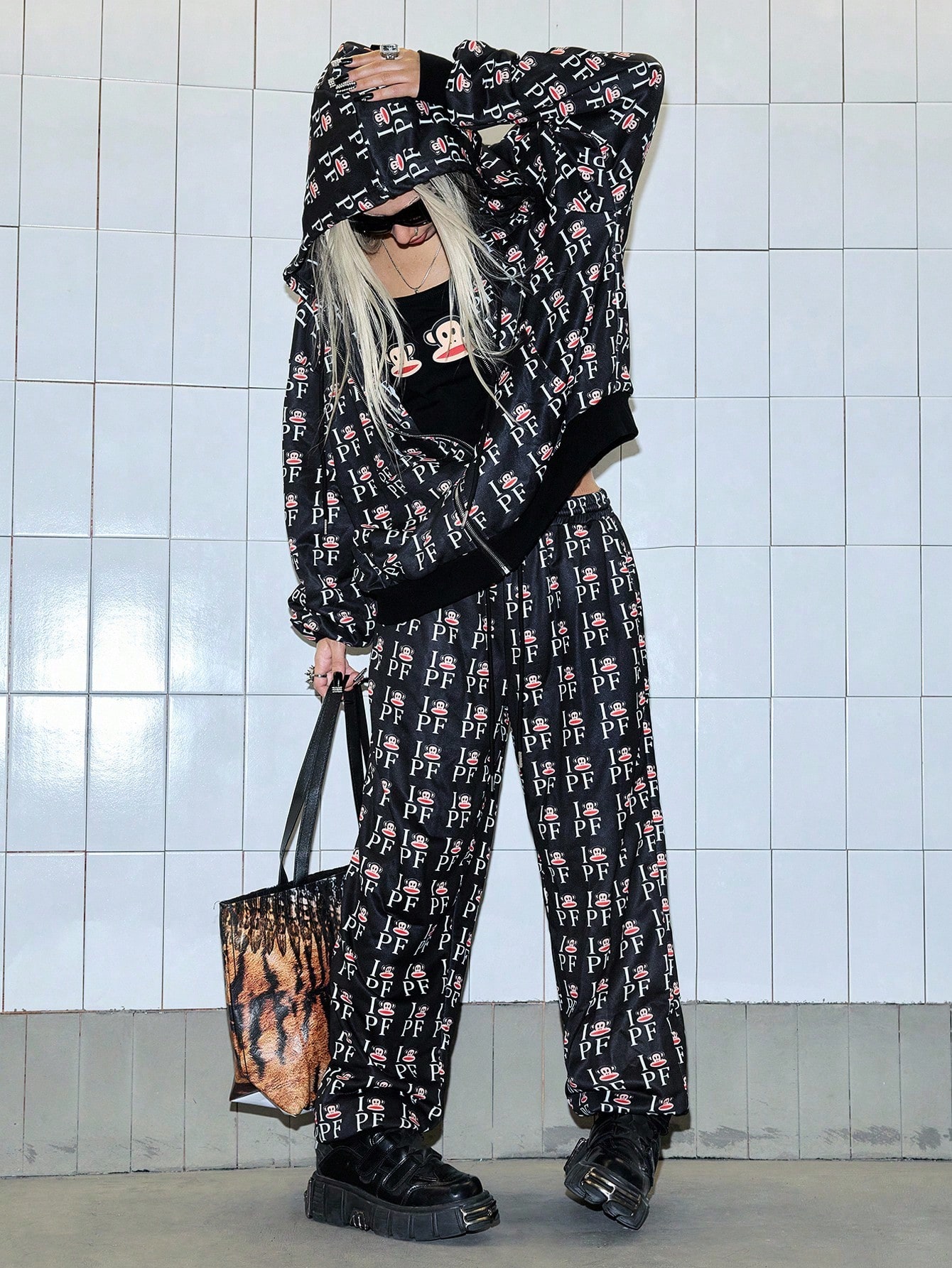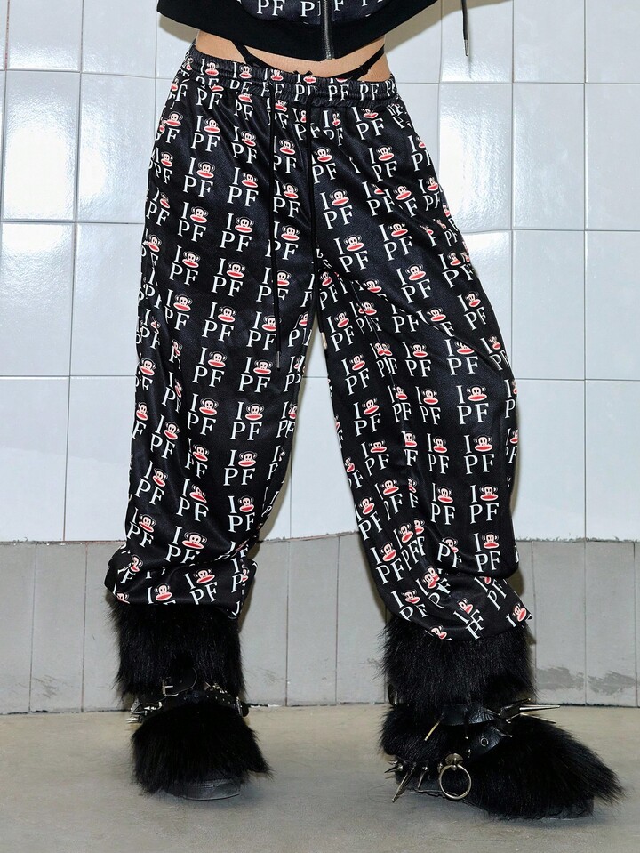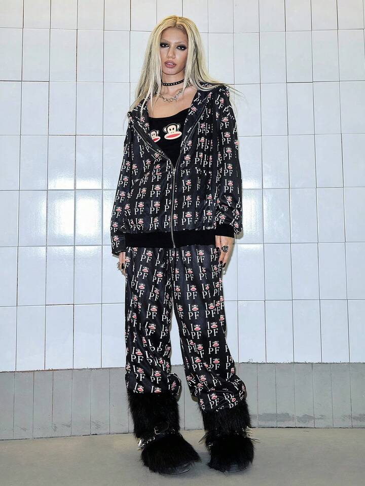 Paul Frank X ROMWE 2 pièces Ensemble Sweat-shirt ample et pantalon de jogging imprimé tout-sur-tout Femmes Sous-culture Fille épicée