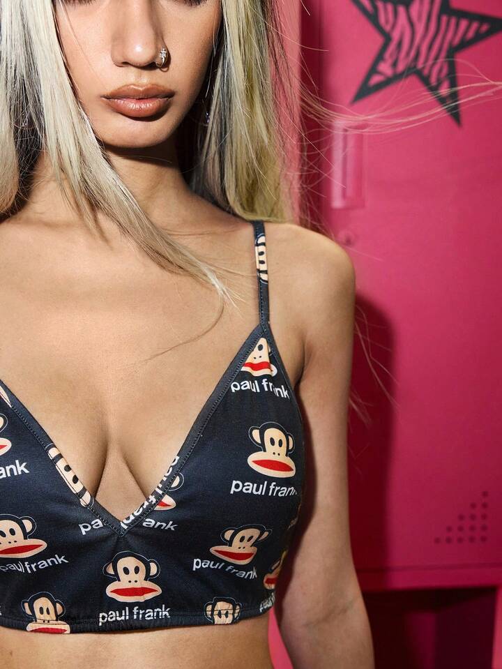Paul Frank X ROMWE 3 pièces Ensemble de pyjama casual avec débardeur en coton à motif dessin animé, short et veste à capuche à manches longues. Vêtements d'automne
