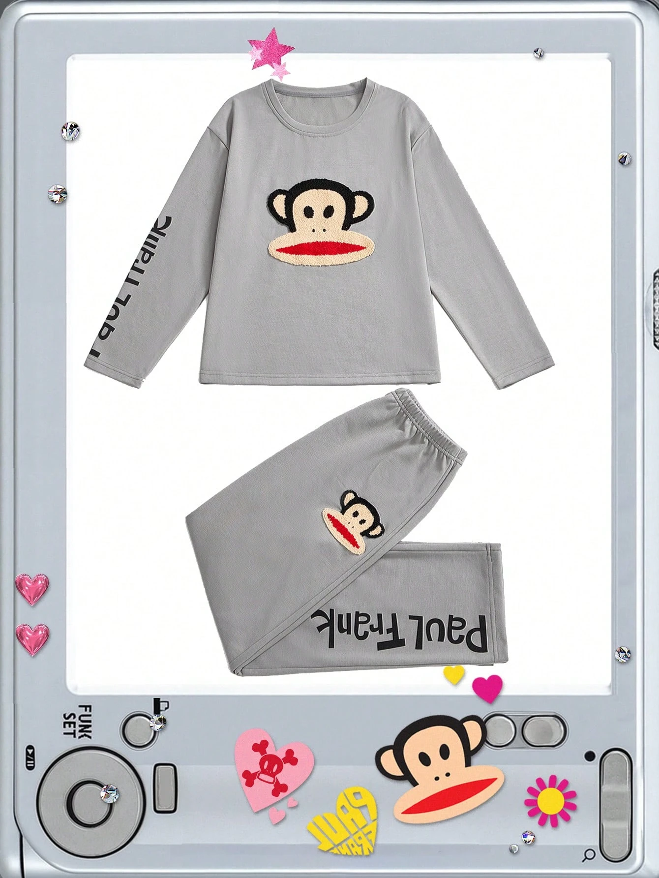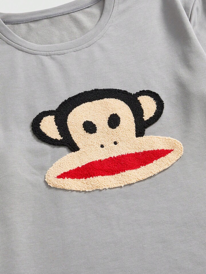 Paul Frank X ROMWE Ensemble de pyjamas décontractés avec chemise à manches longues en coton et pantalon avec patch de dessin animé