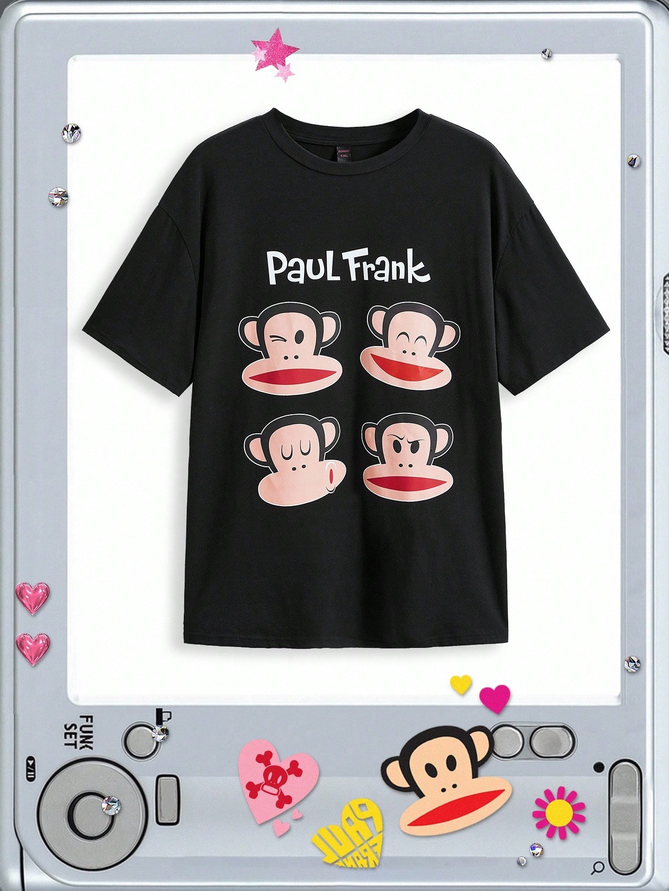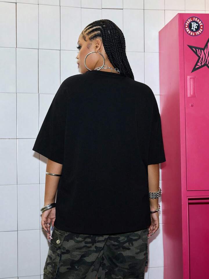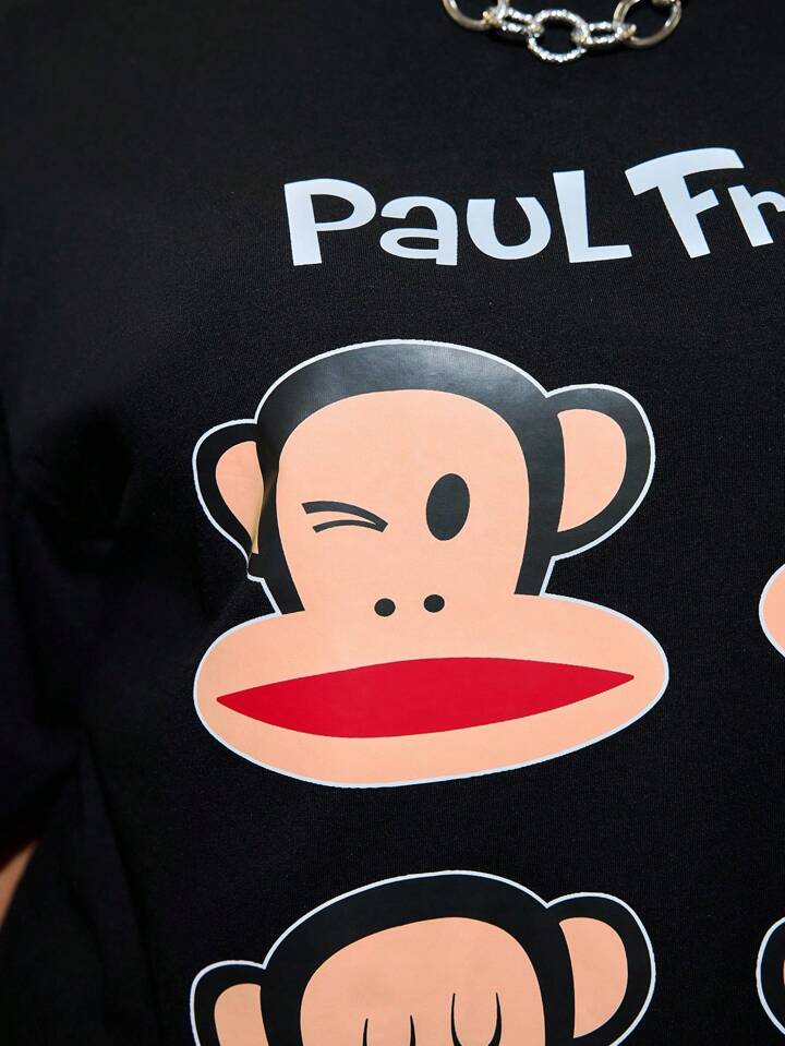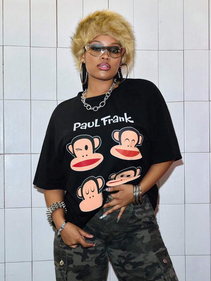 Paul Frank X ROMWE Oversize T-shirt à imprimé tête de singe lâche avec épaules tombantes