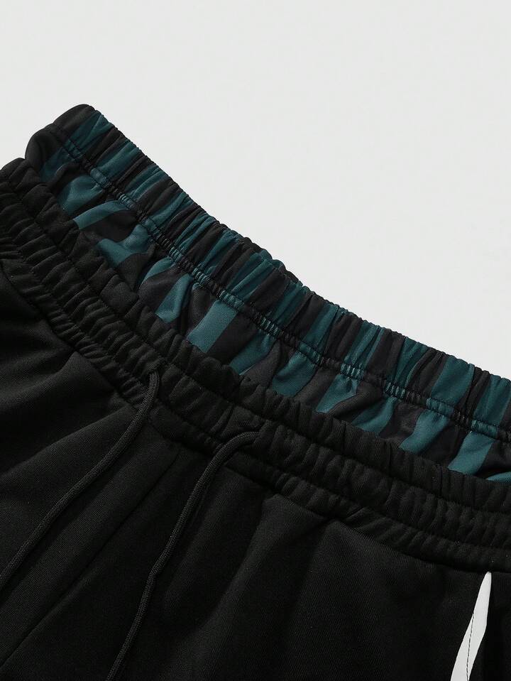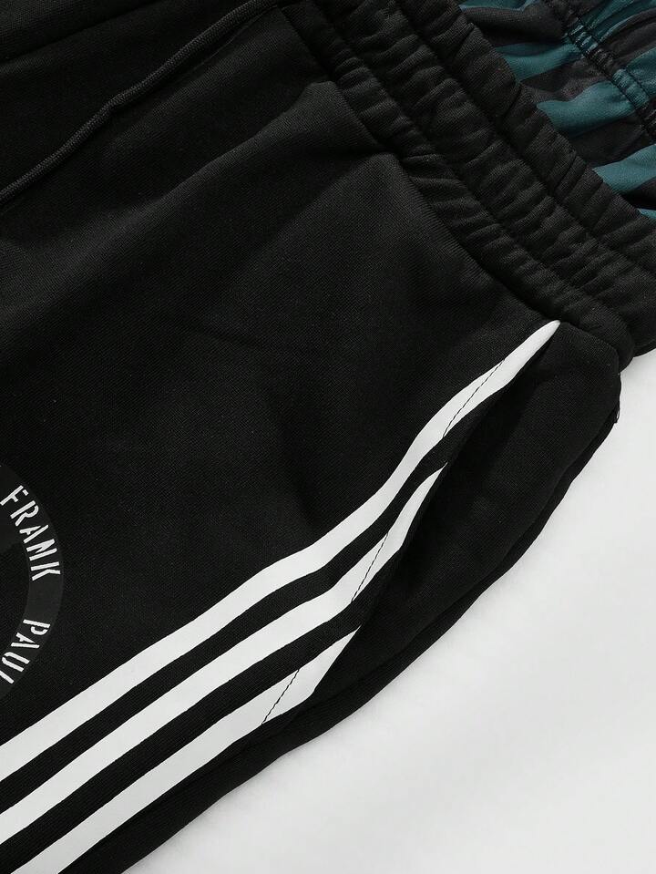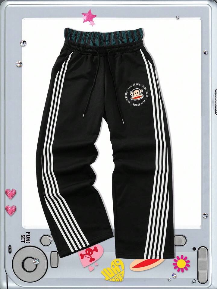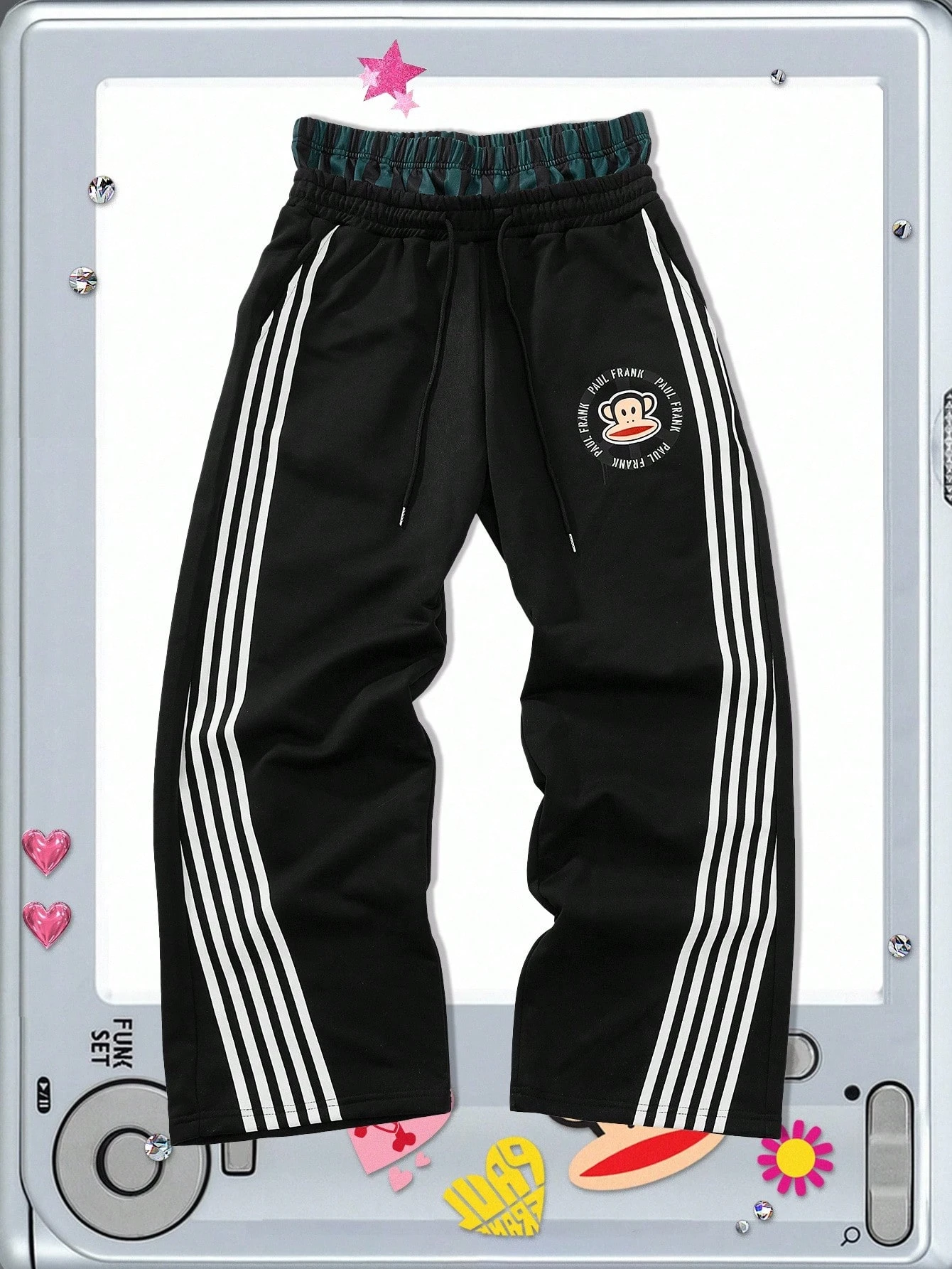 Paul Frank X ROMWE Pantalon homme à motif de dessin animé, style de rue américain, pantalon de jogging à taille rayée et imprimé patchwork, automne