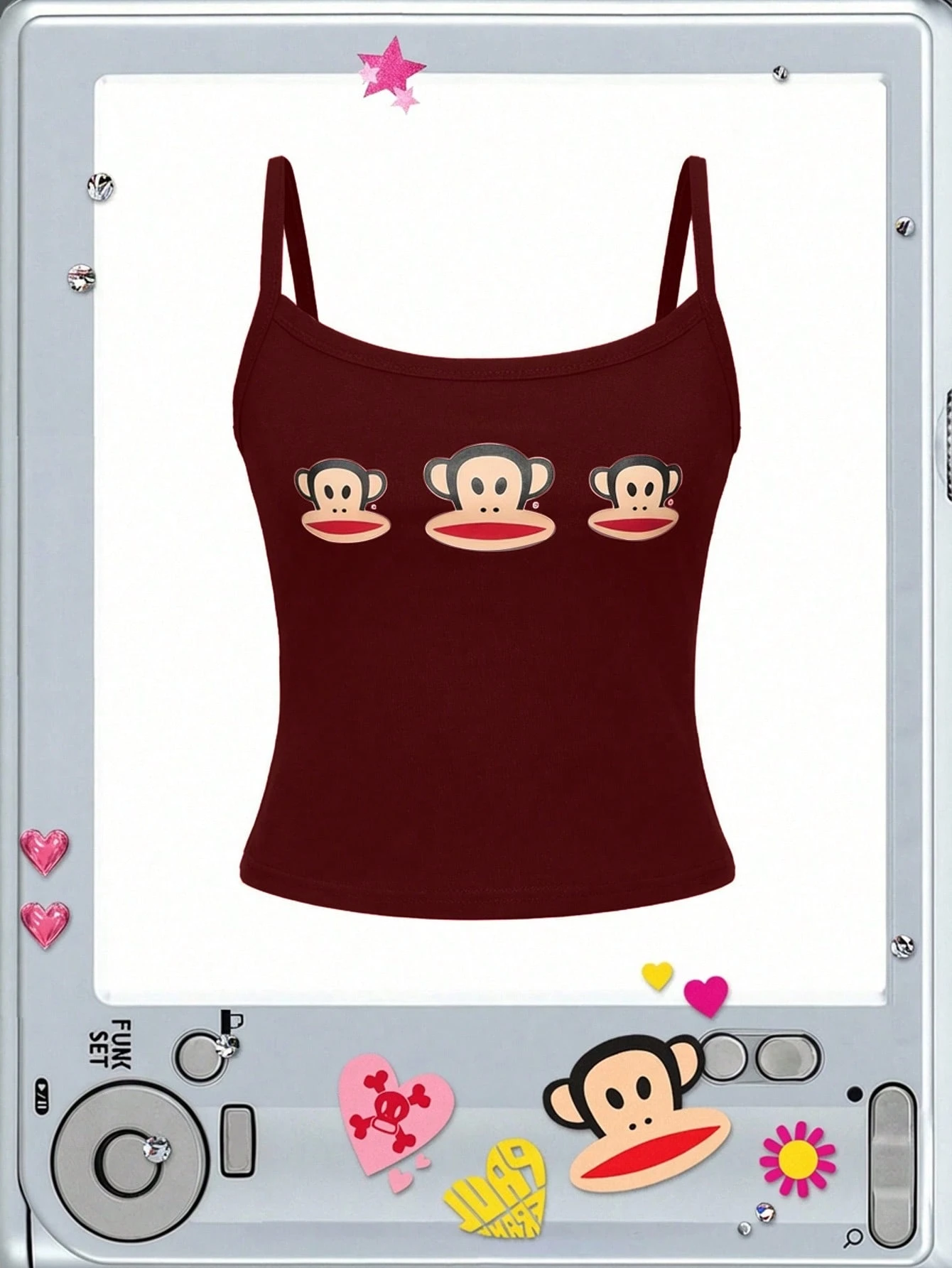 Paul Frank X ROMWE Débardeur slim en coton imprimé singe Y2K pour femmes
