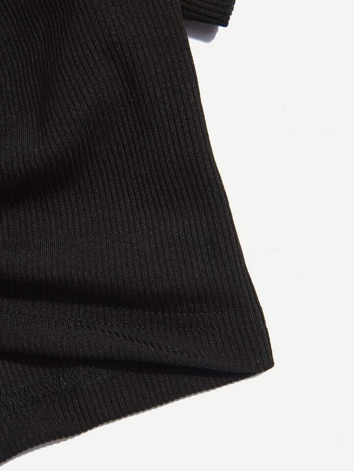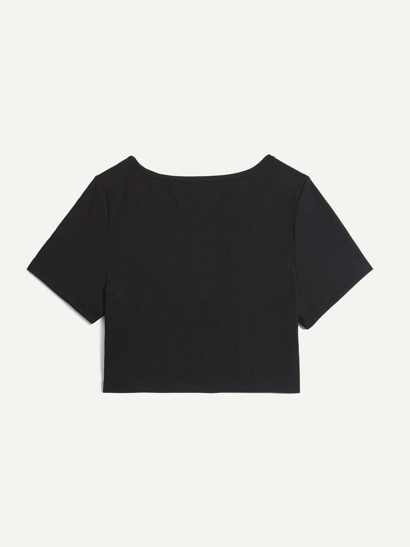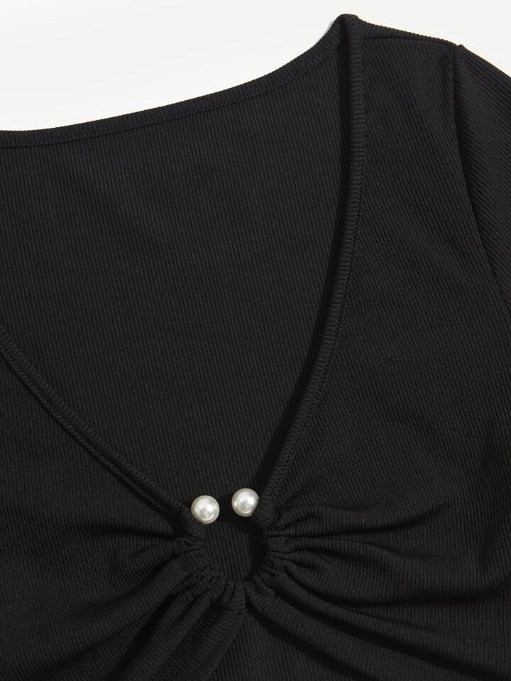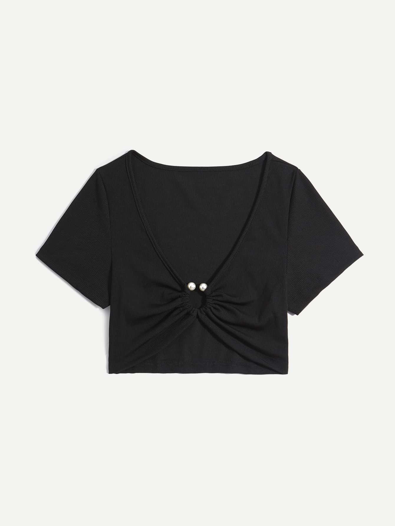 T-shirt court à perles à détail anneau