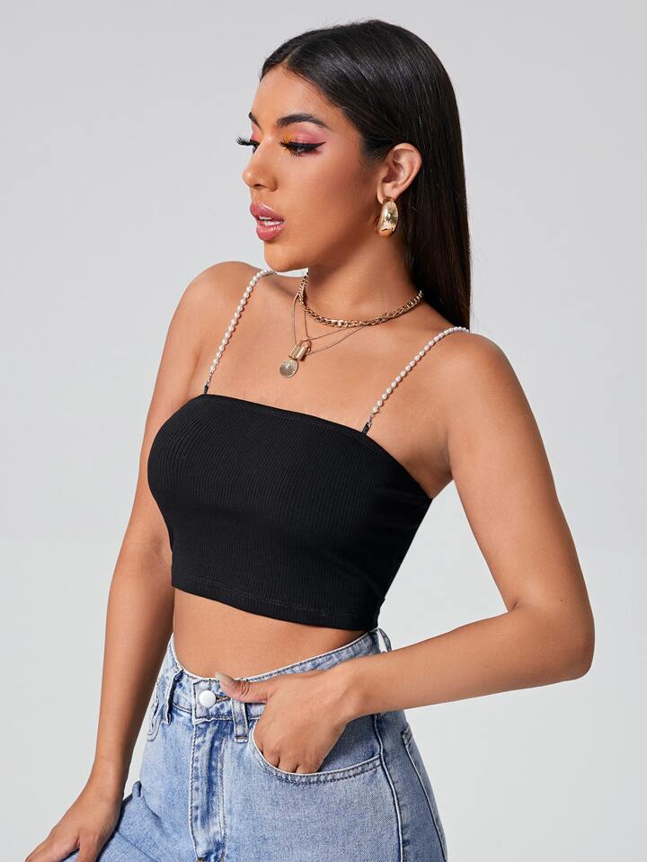 Top court à fines brides à perles
