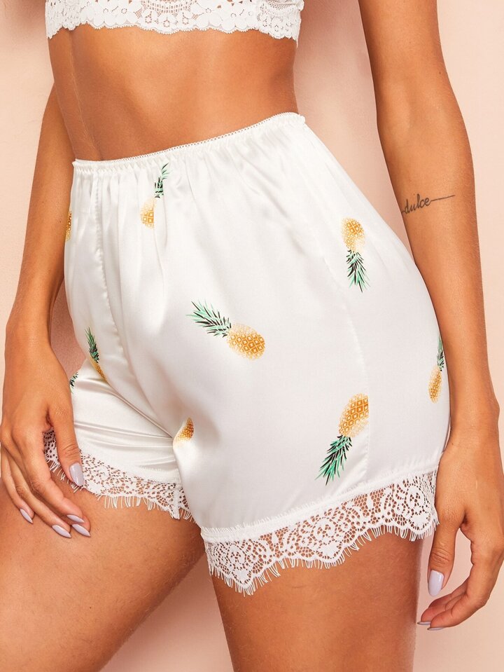 Short de dormir en satin avec imprimé et dentelle