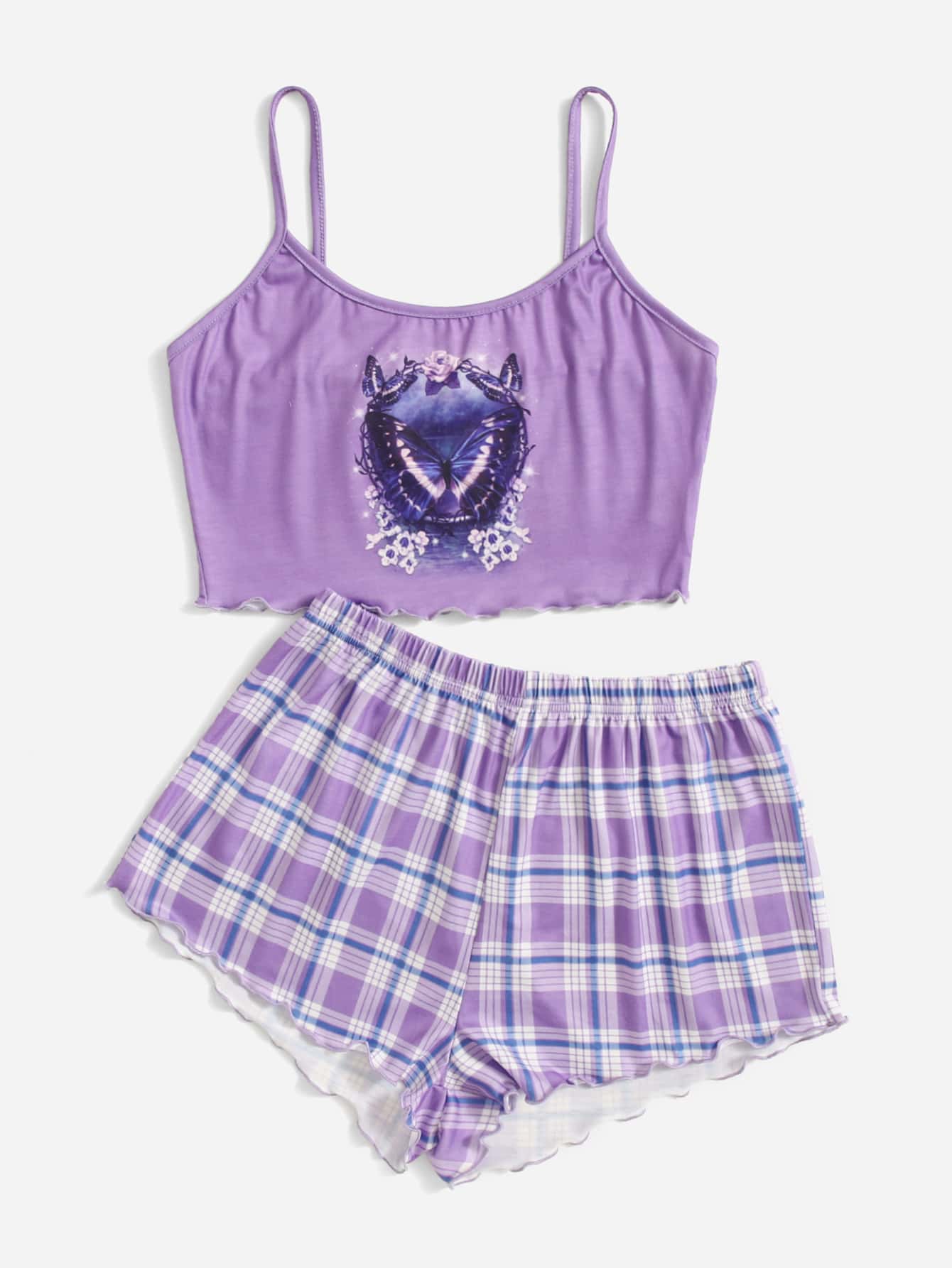 Ensemble de pyjama à carreaux à imprimé papillon