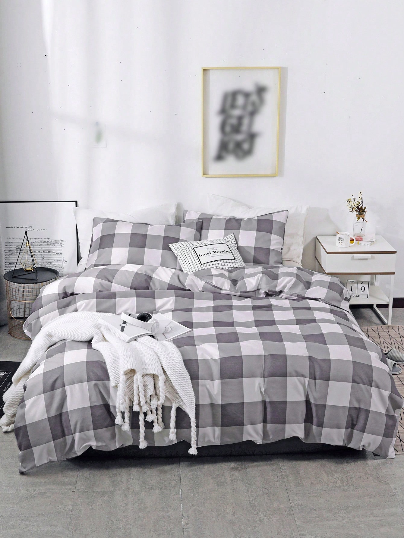 Set de literie à carreaux (sans bourre)