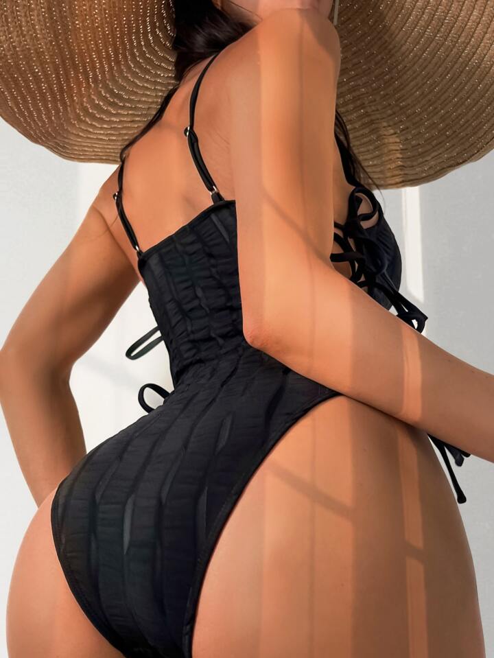 Maillot De Bain Une Pièce Unicolore À Nœud