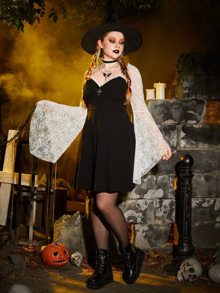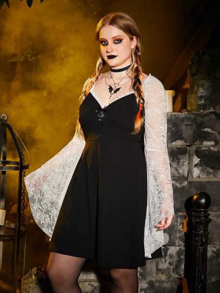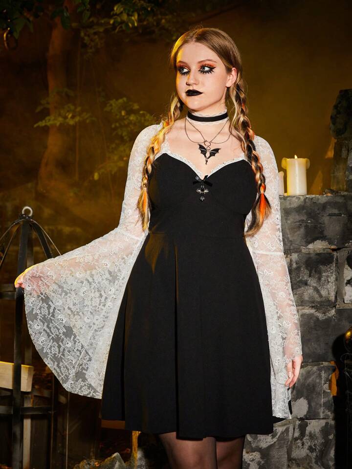 Plus 1 pièce Robe En Dentelle À Manche Évasée