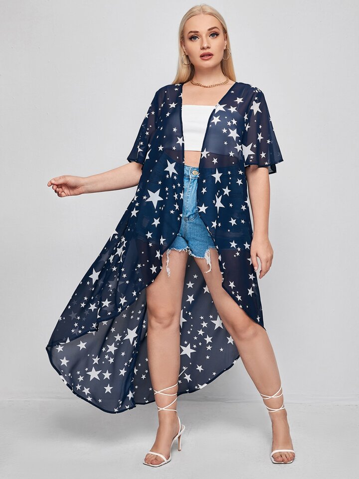 Kimono en mousseline de soie transparente imprimé d'étoiles pour le 4 juillet