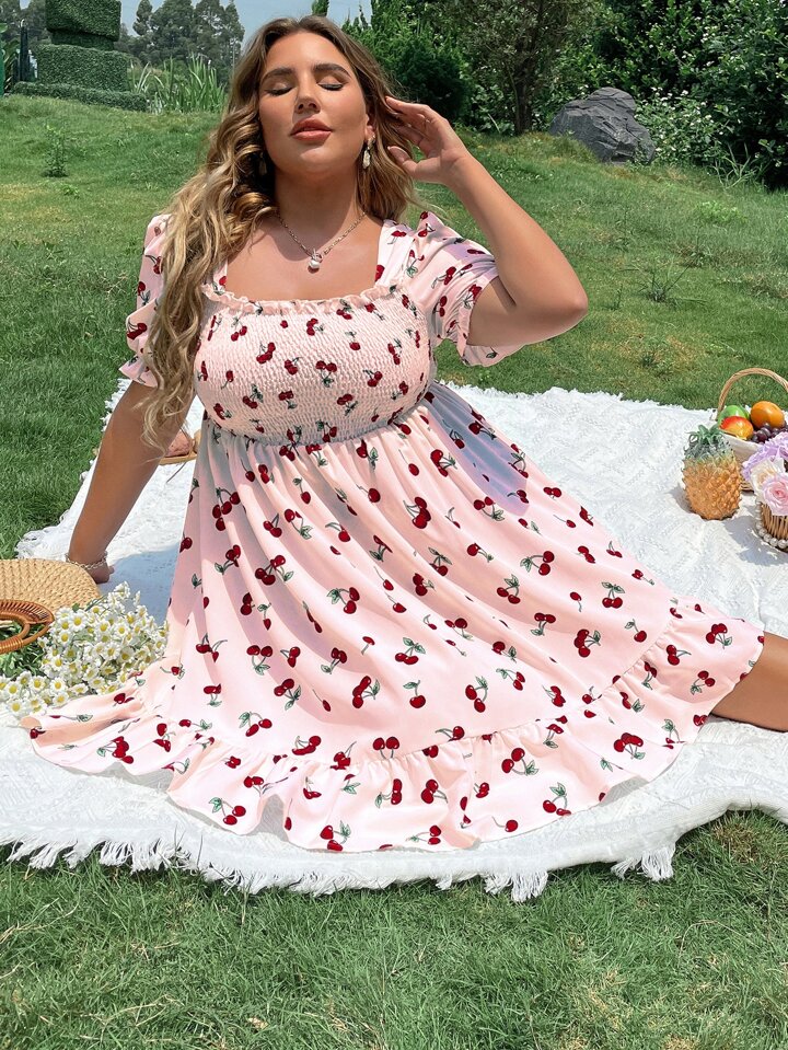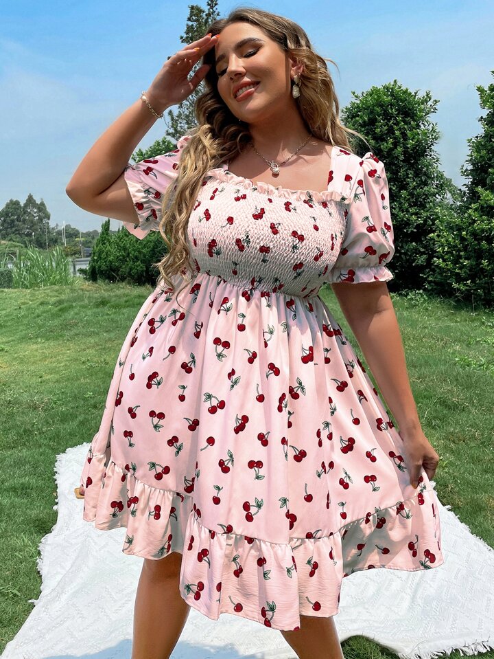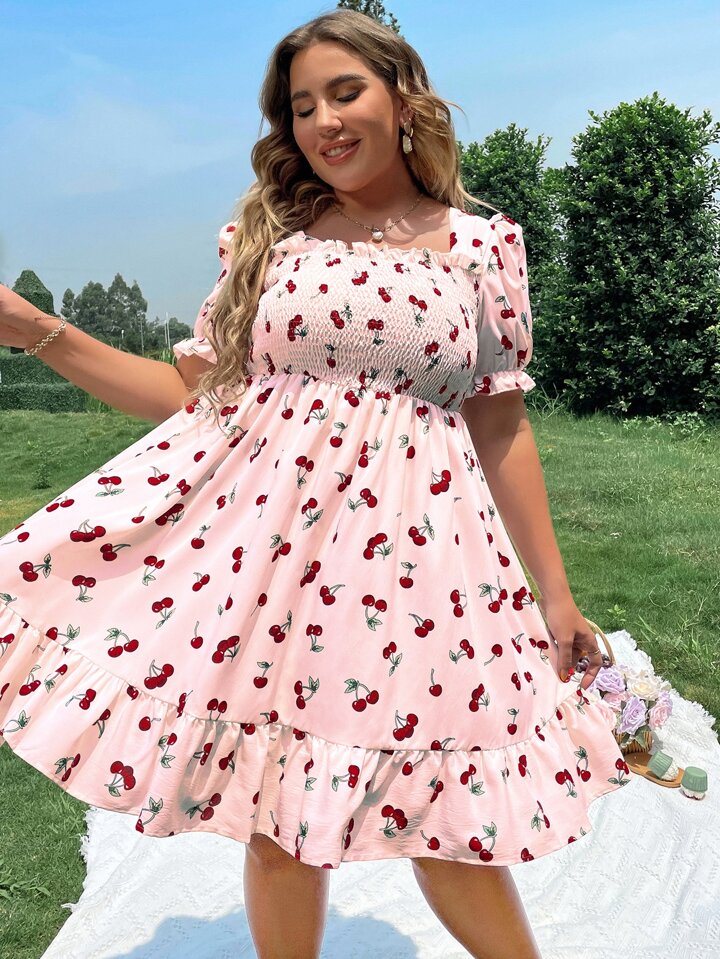 Robe cerise à fronces froncé à volants