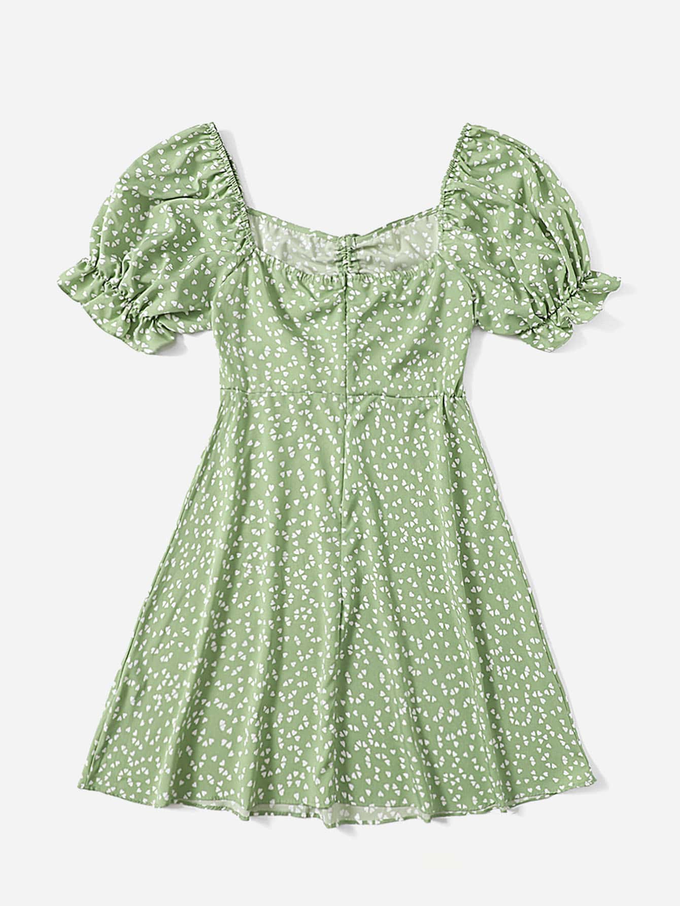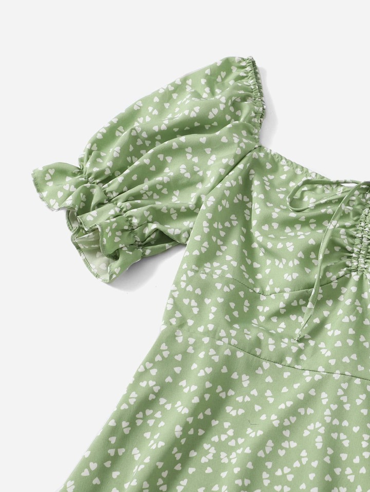 Robe à imprimé cœur manches évasées à cordon à ruché