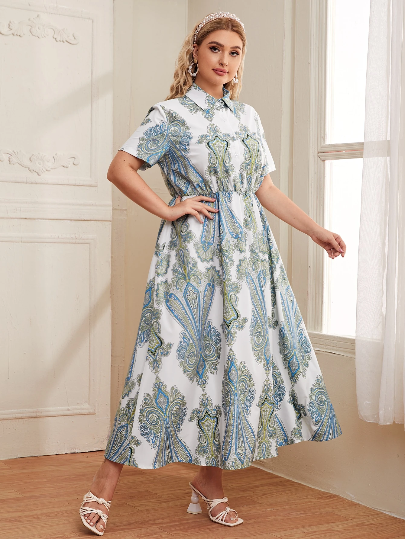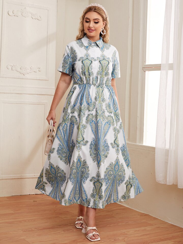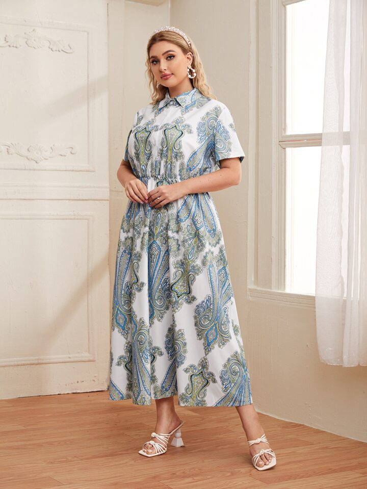 Robe chemise à imprimé baroque taille haute