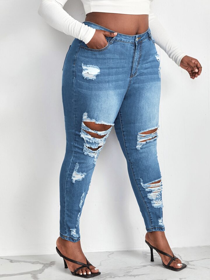 Jean skinny délavé déchiré effiloché