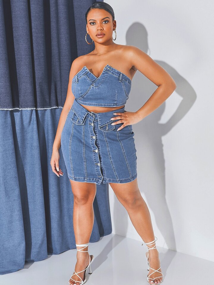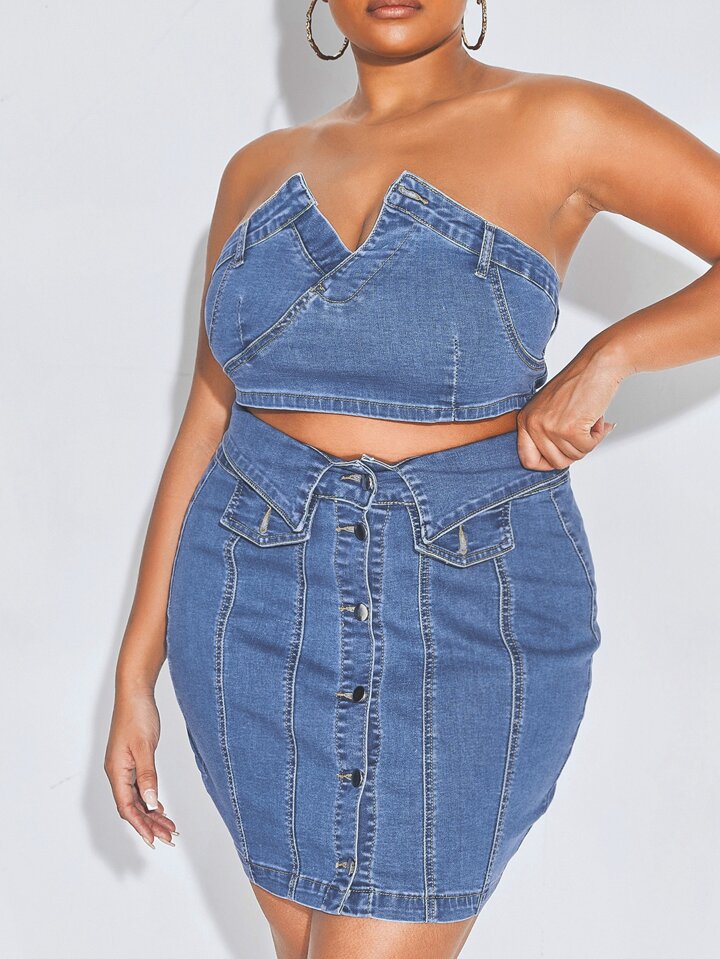 Top bustier avec boutons & Jupe en jean