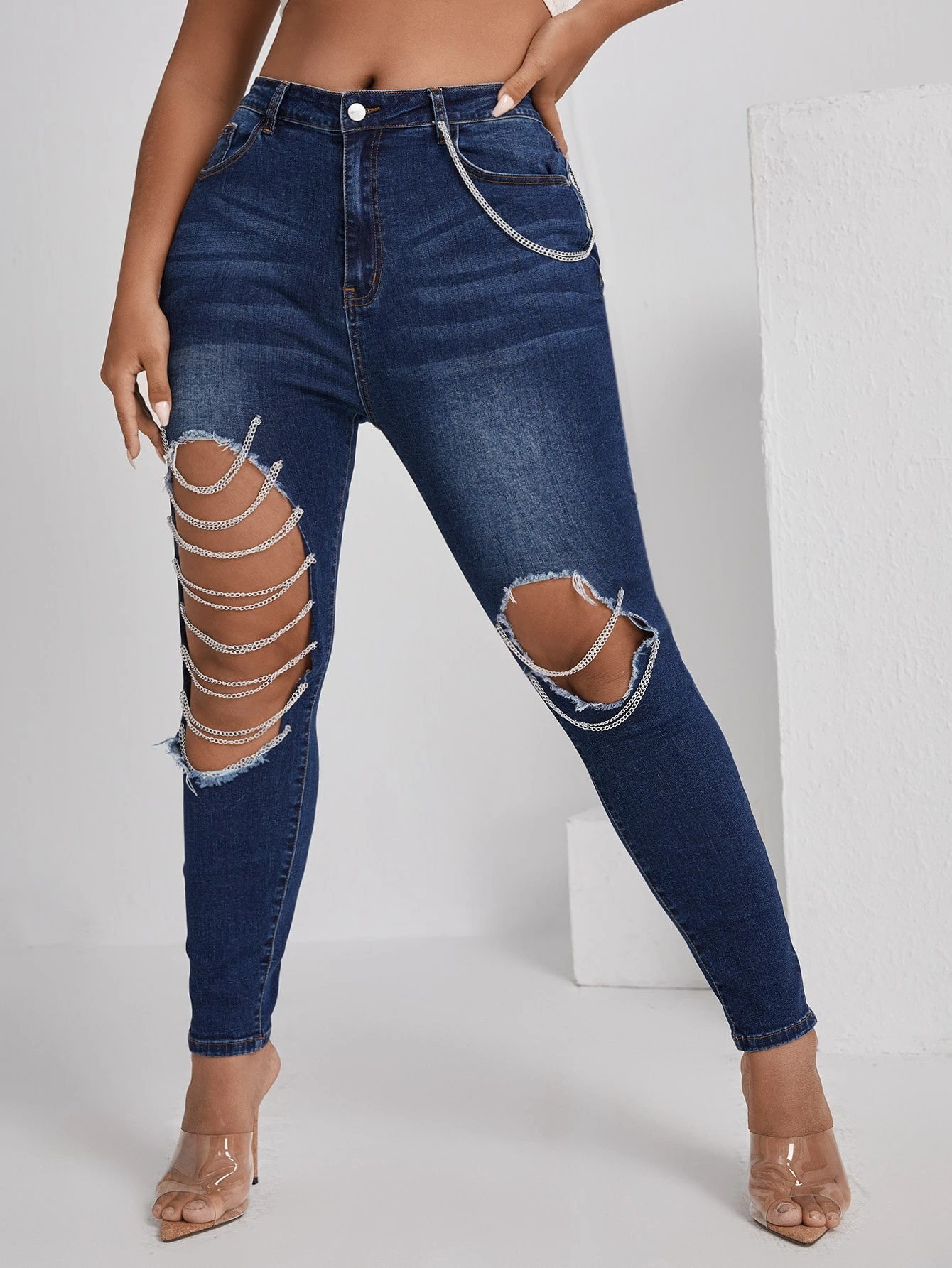 Jean skinny à chaîne découpe