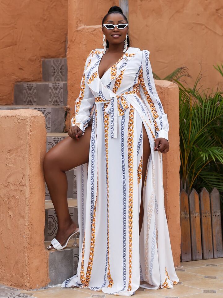 seomiscky Robe ceinturée à imprimé chaîne avec plis