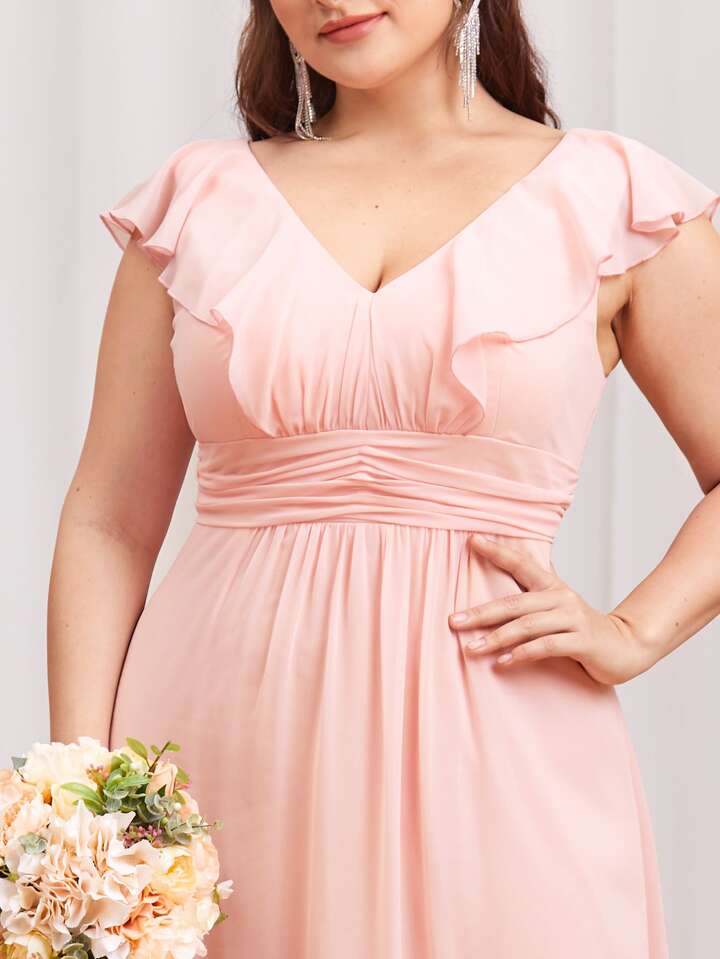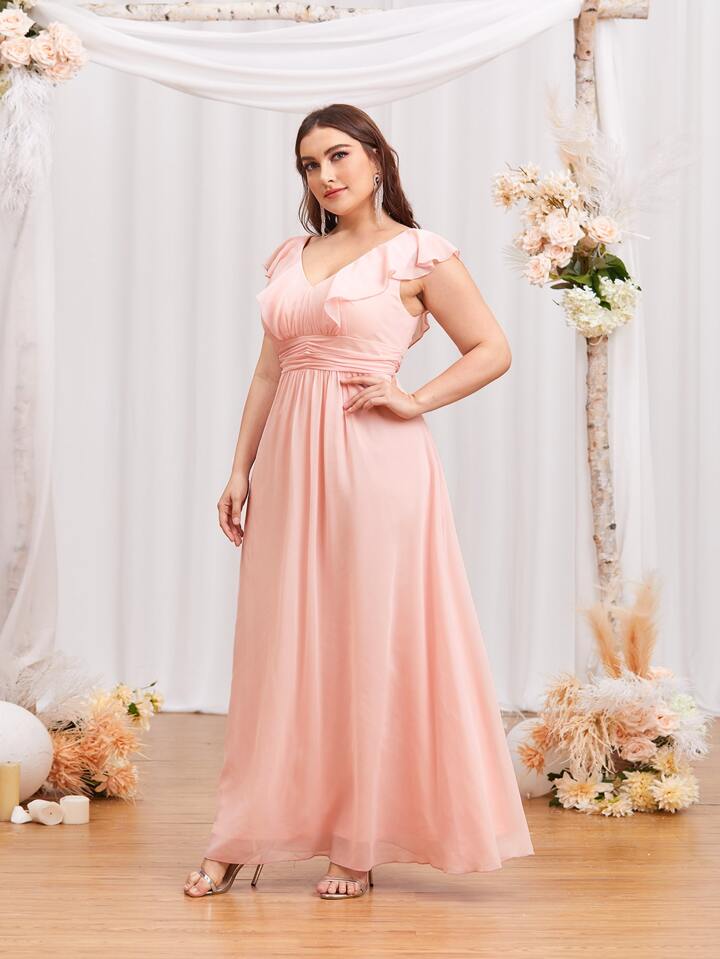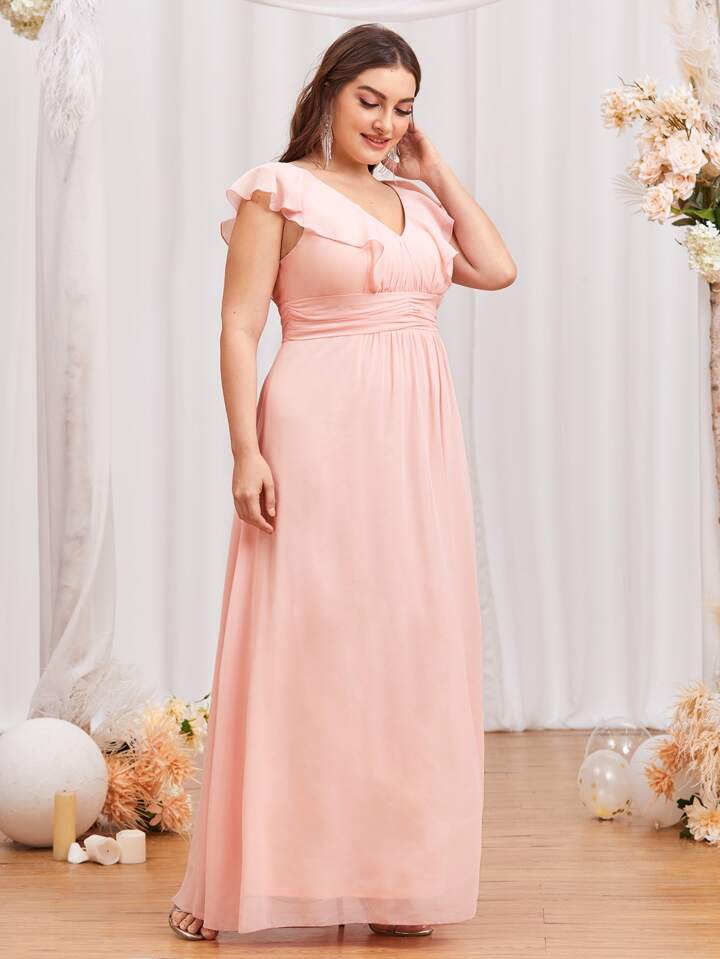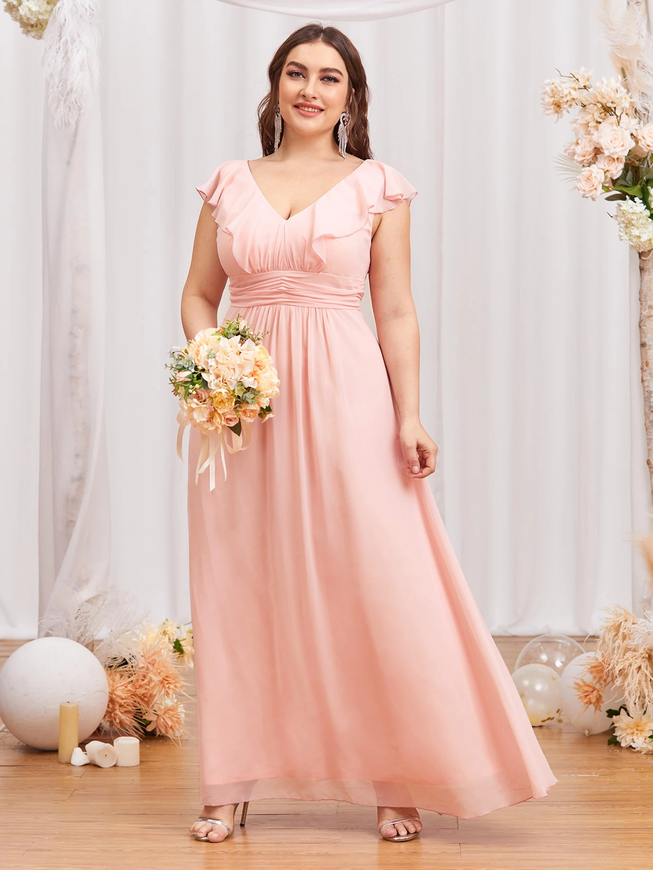 Robe De Soirée En Mousseline De Soie Encolure V À Volants Long