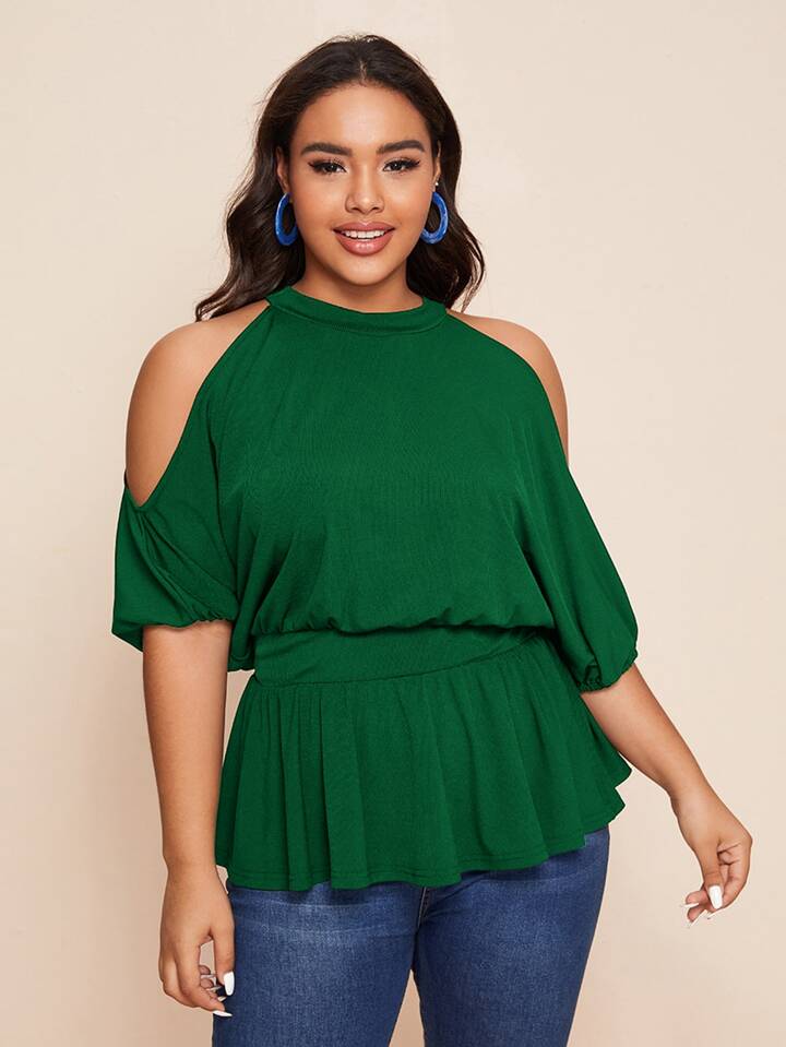 T-shirt péplum col bardot