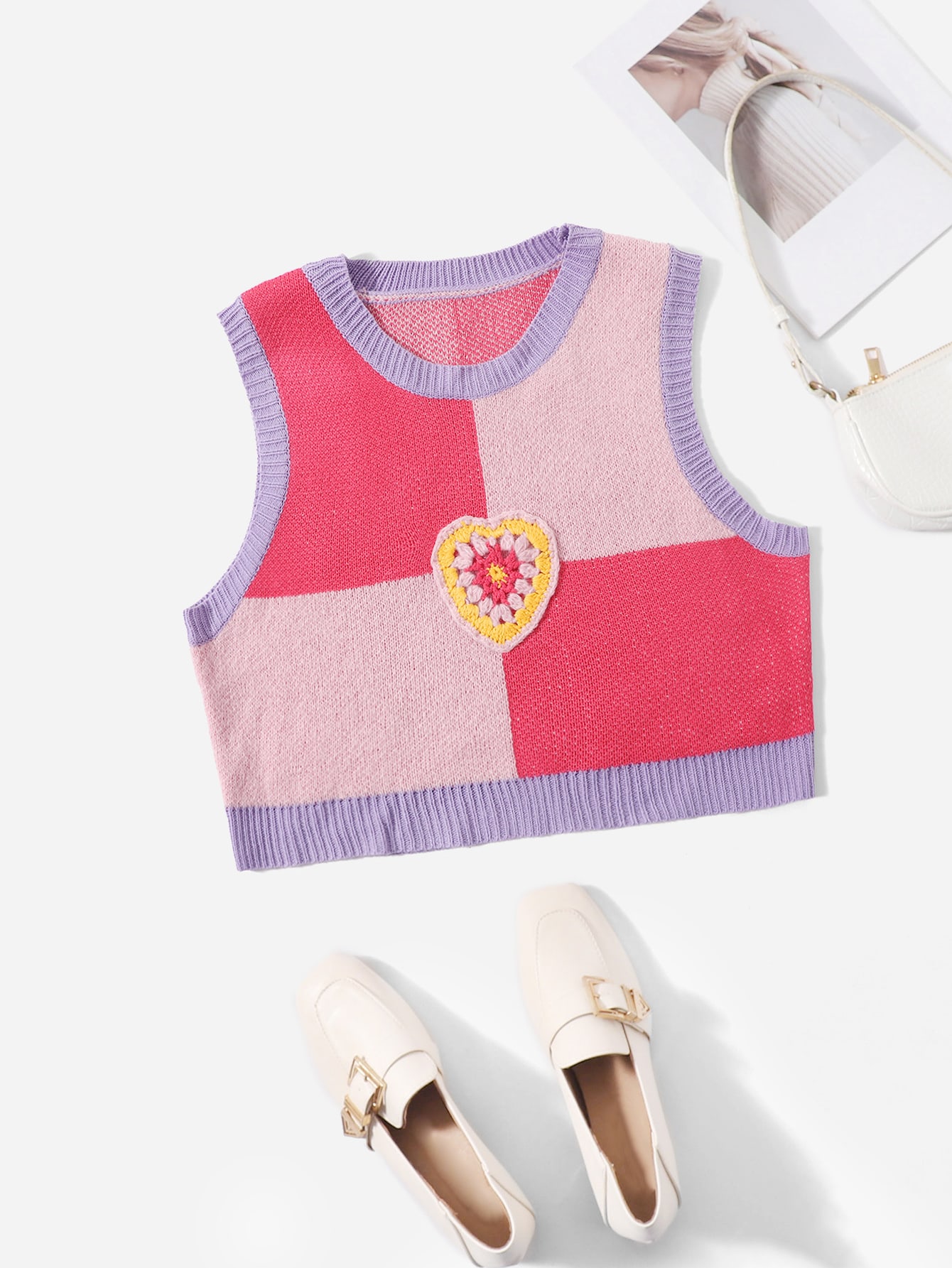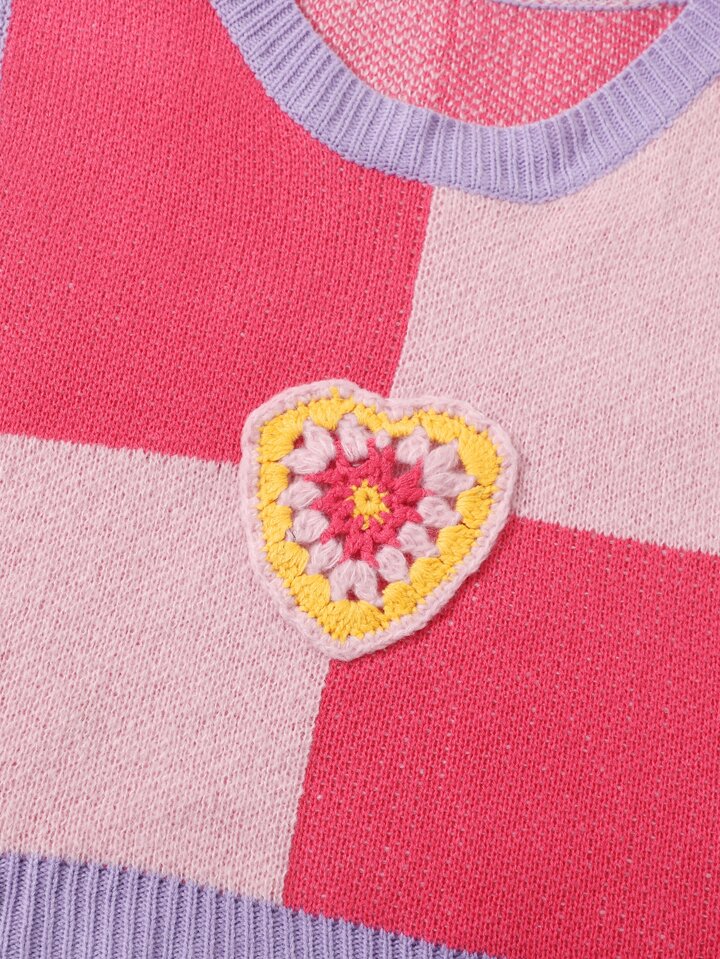 Pull sans manches à blocs de couleurs avec motif cœur