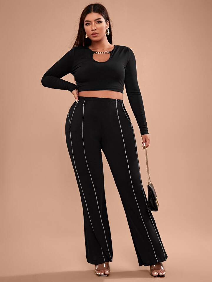 Pantalon évasé à liseré contrastant