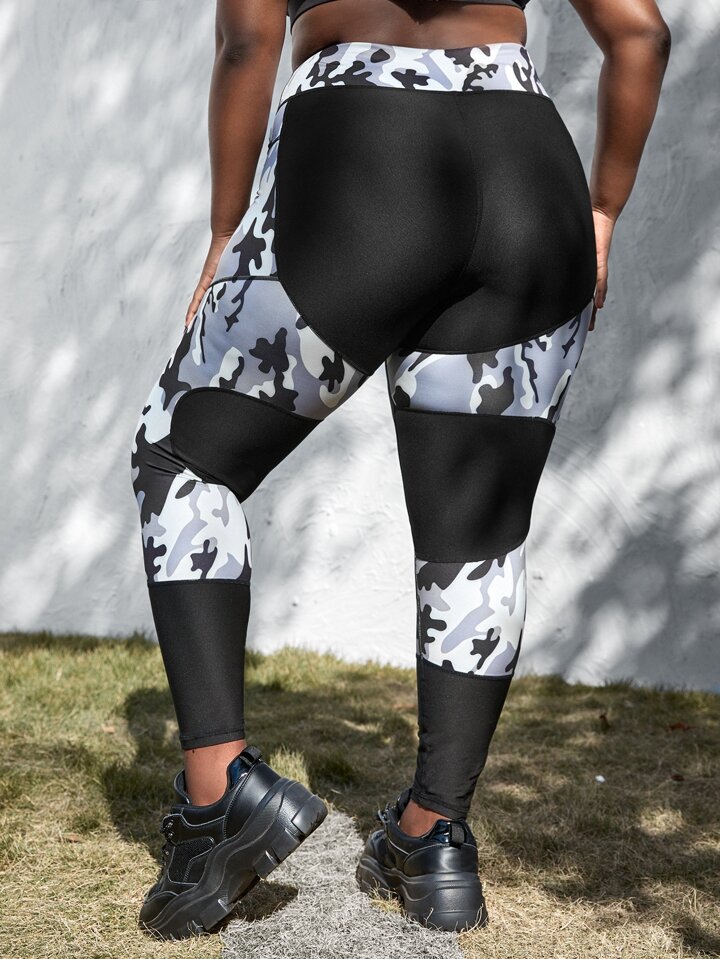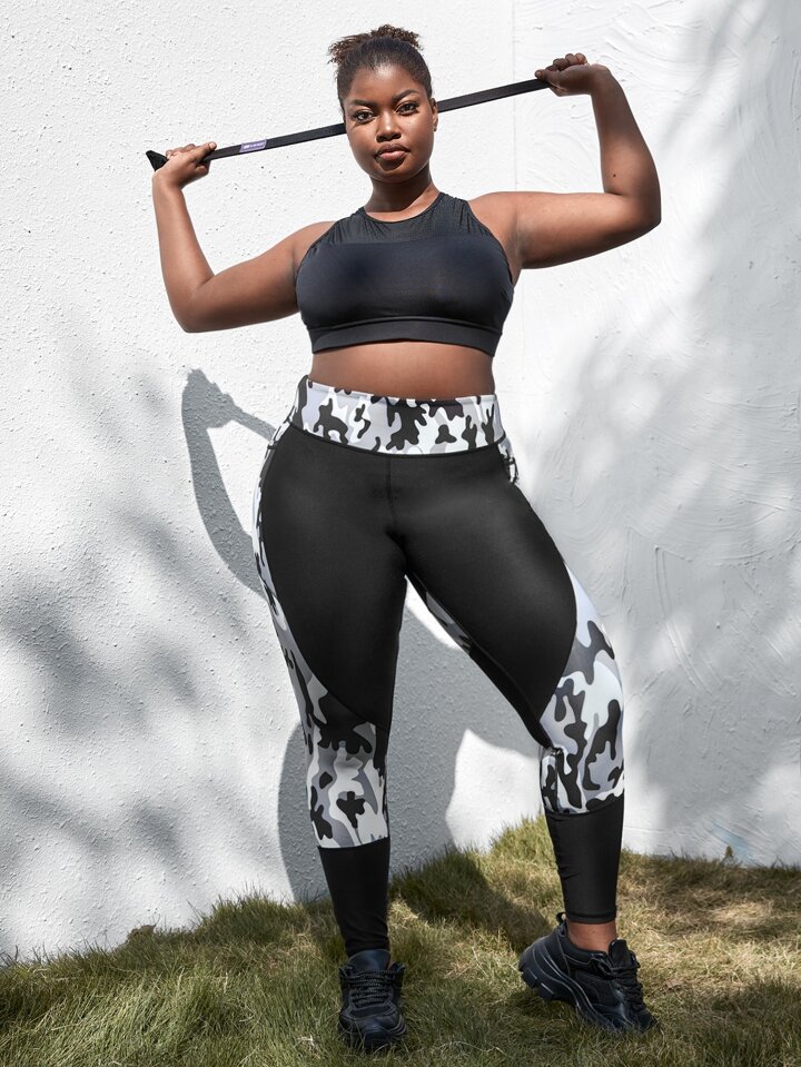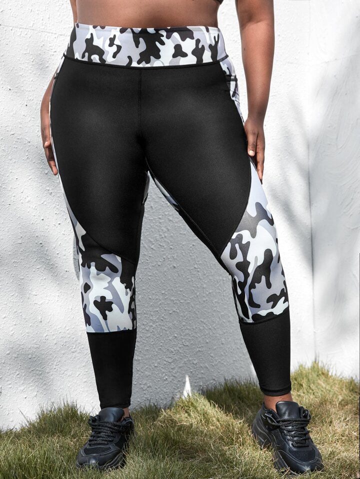 Legging de sport avec motif camouflage et poche de téléphone