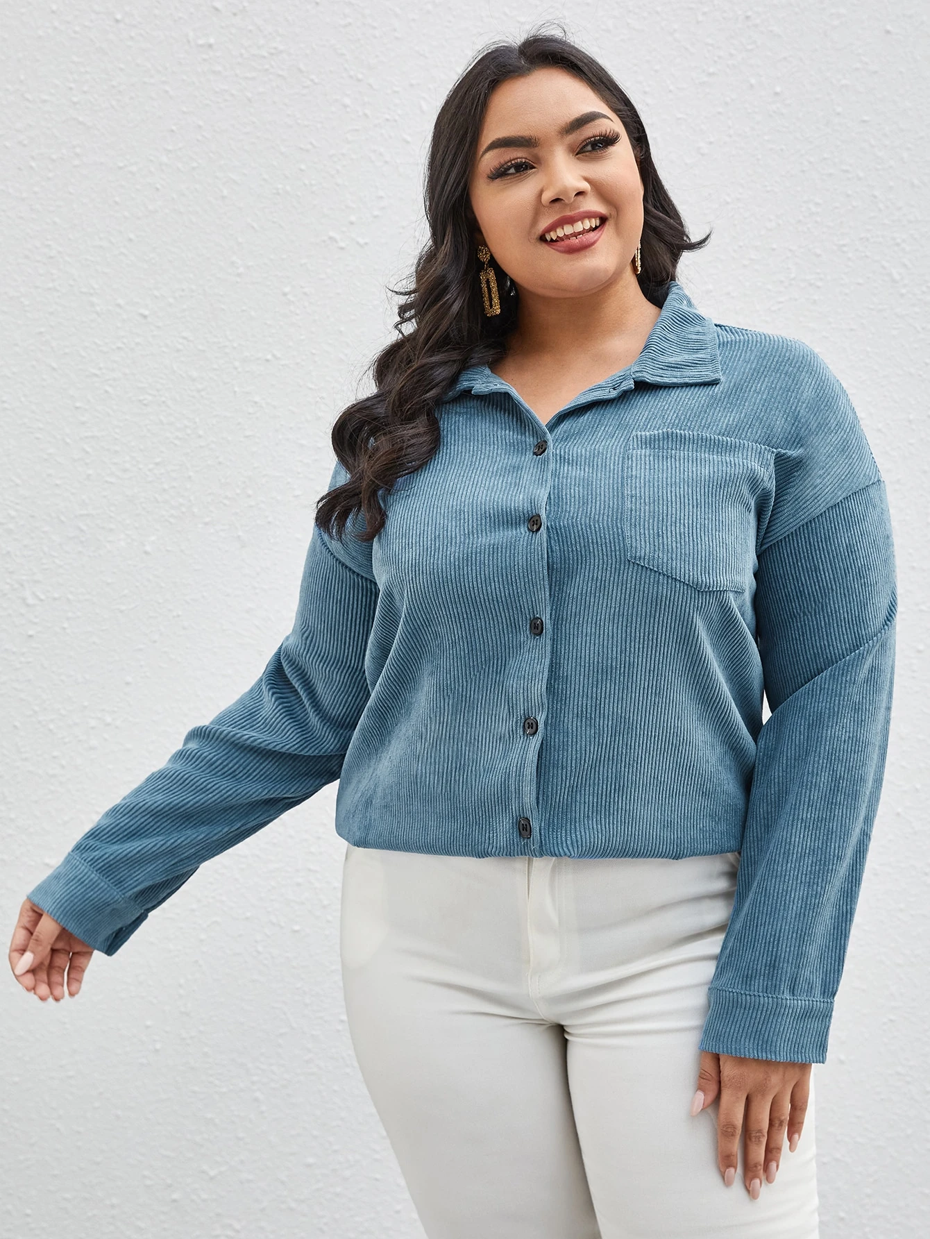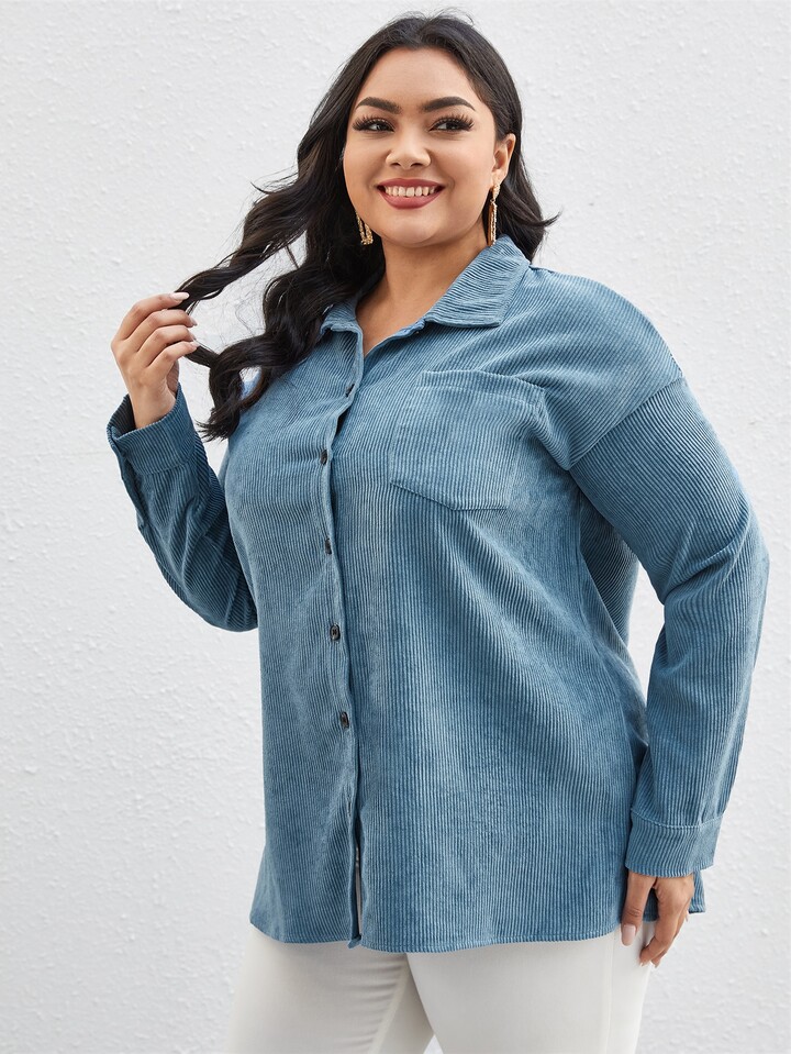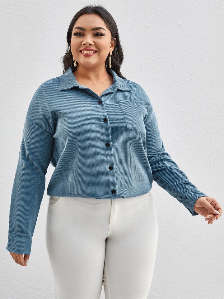 Manteau unicolore en velours côtelé