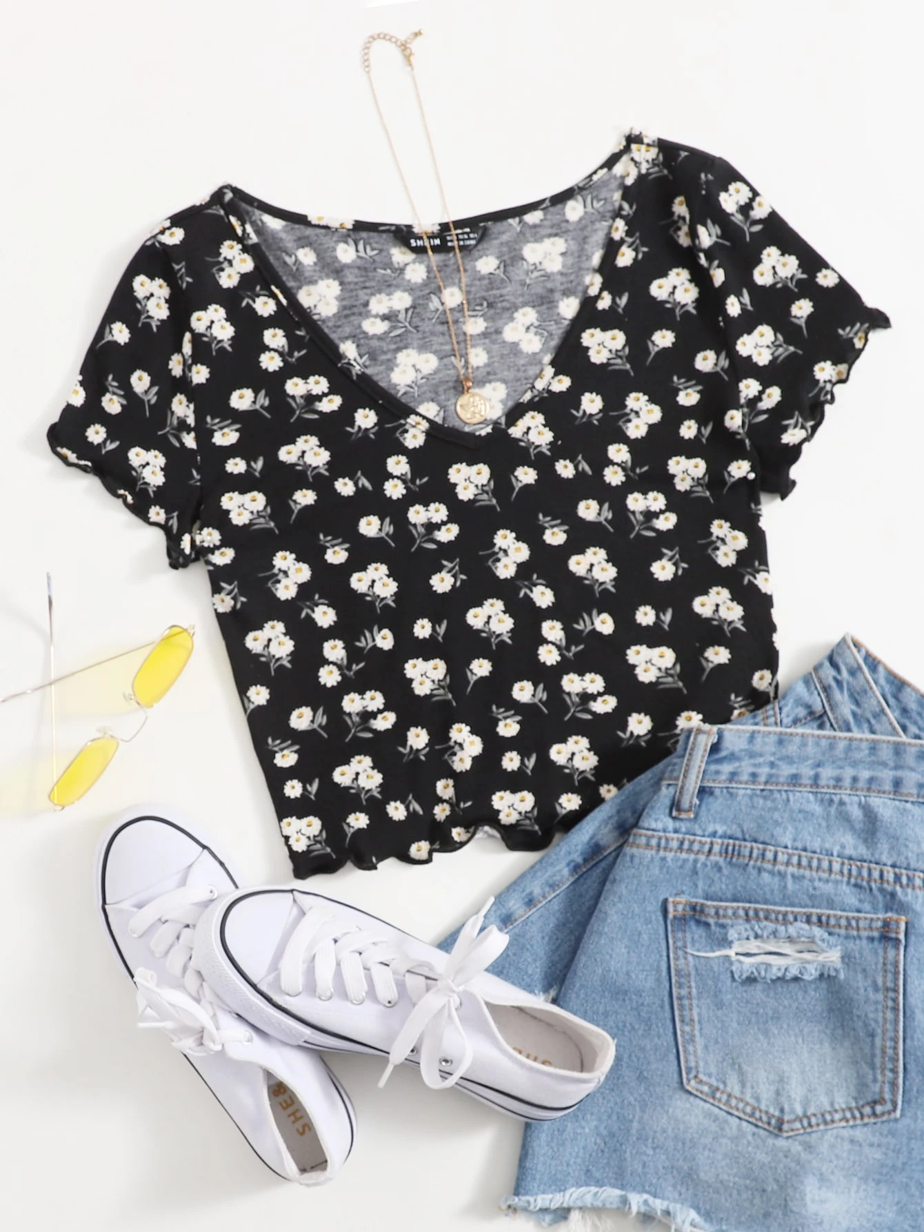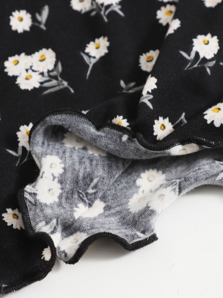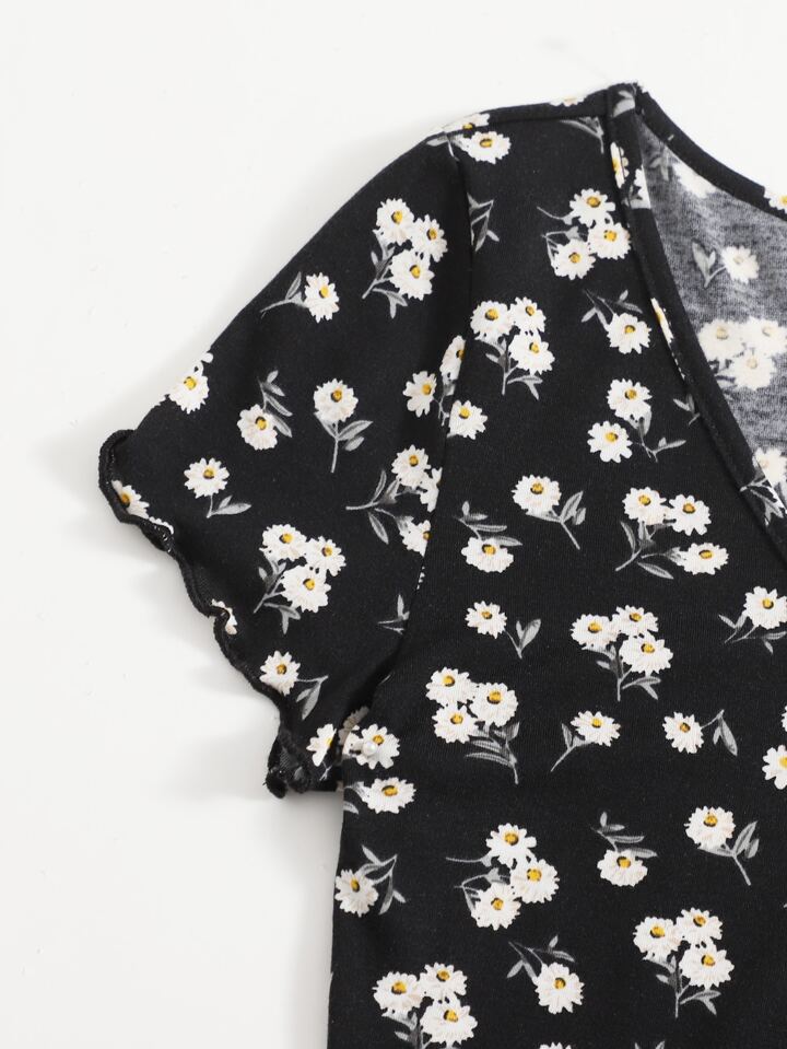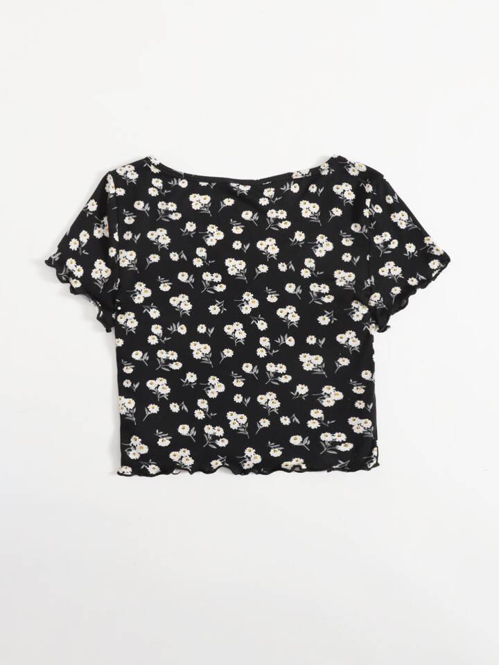 Cottagecore Top à ourlet ondulé marguerite