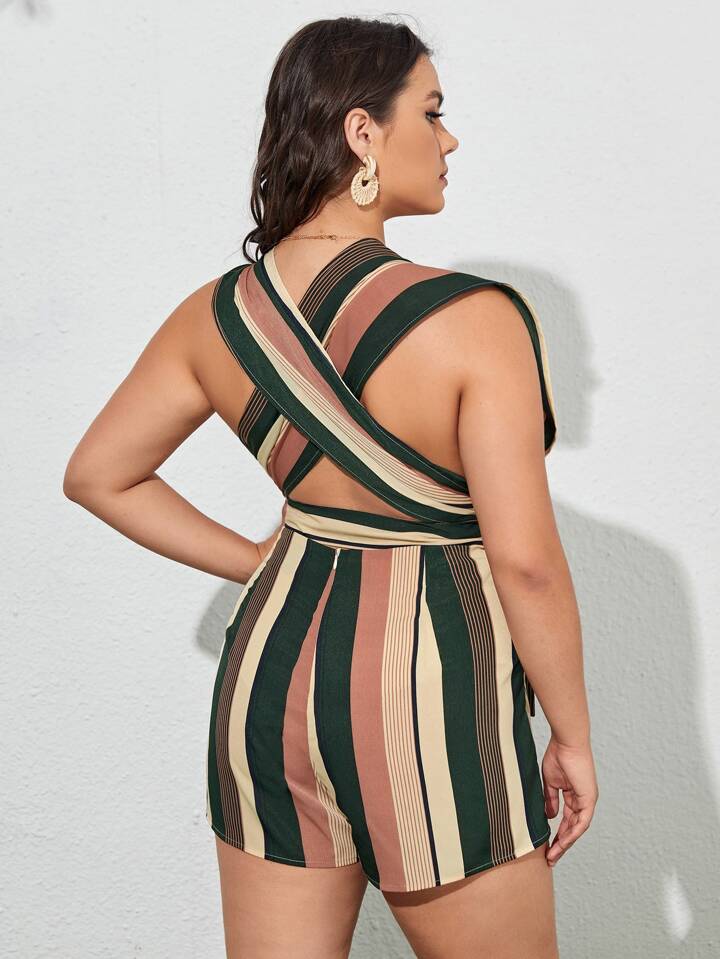 Combishort croisé ceinturé à rayures