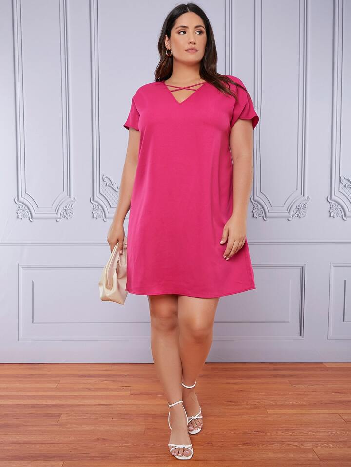 Robe unicolore croisé encolure V