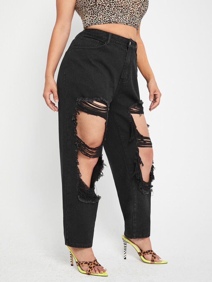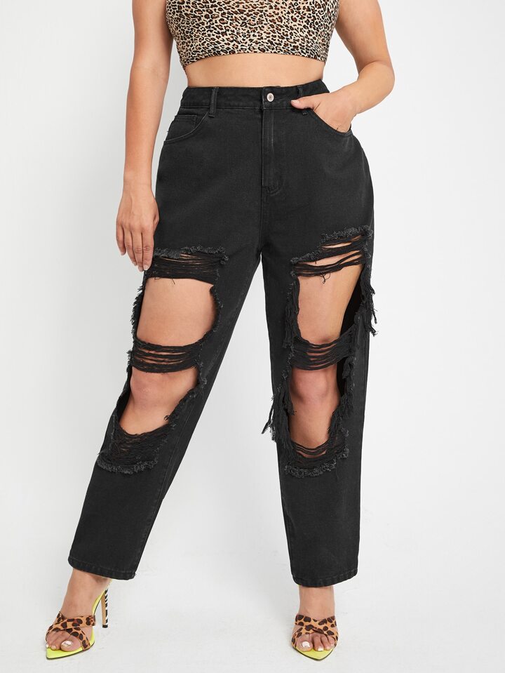 Jean mom curve taille haute déchiré