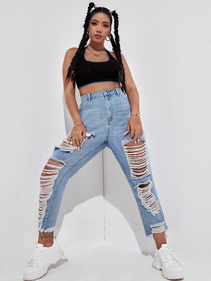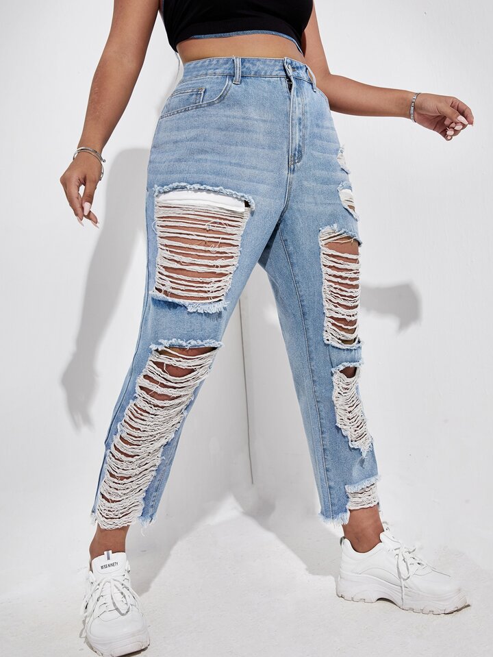 Jean déchiré déchiré unicolore