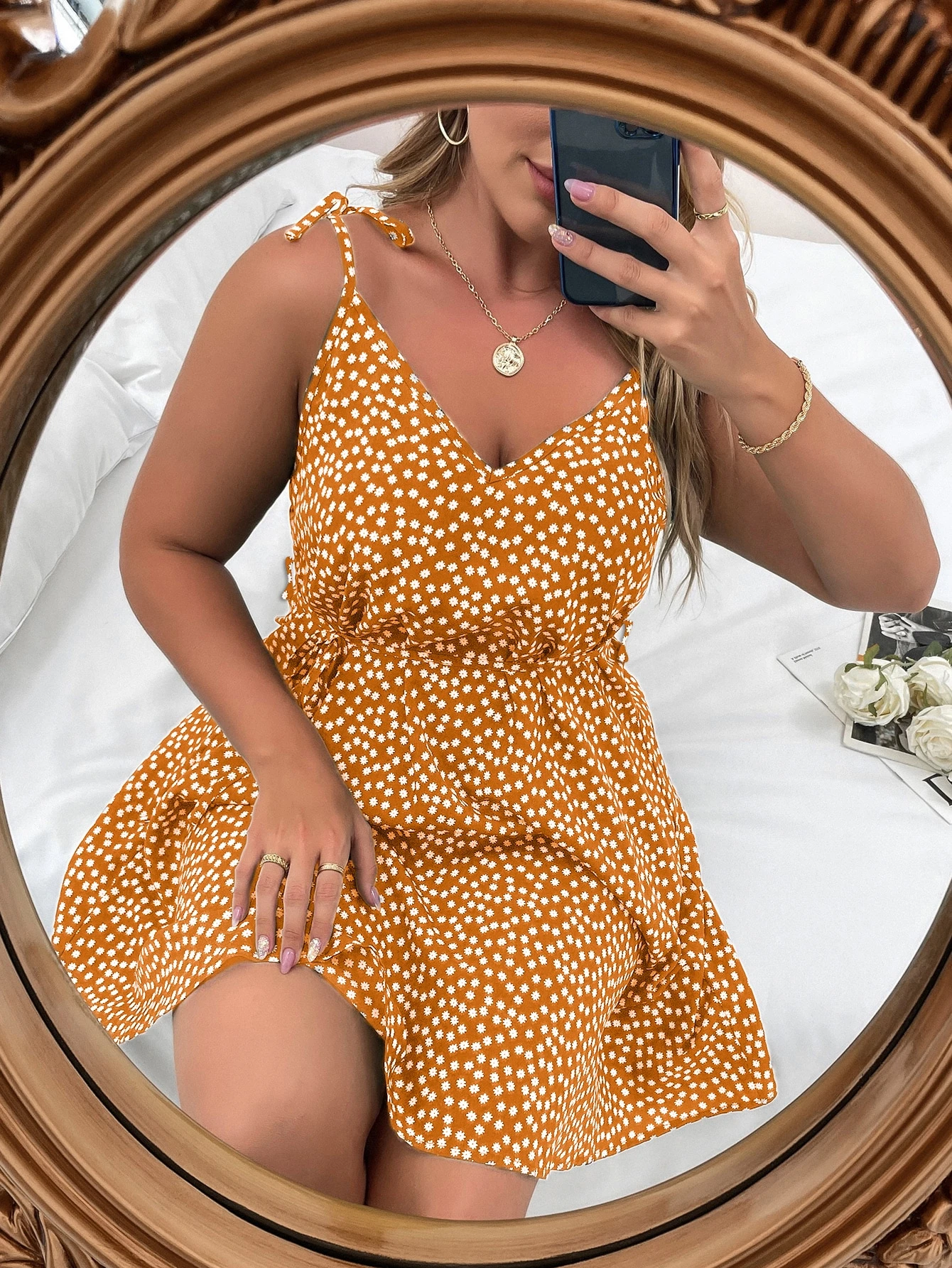 Robe à fines brides fleuri ceinturé