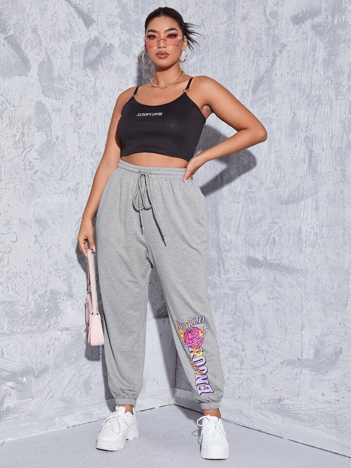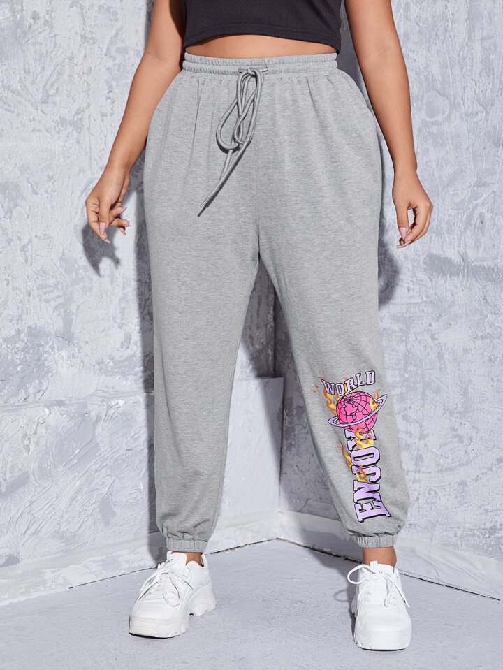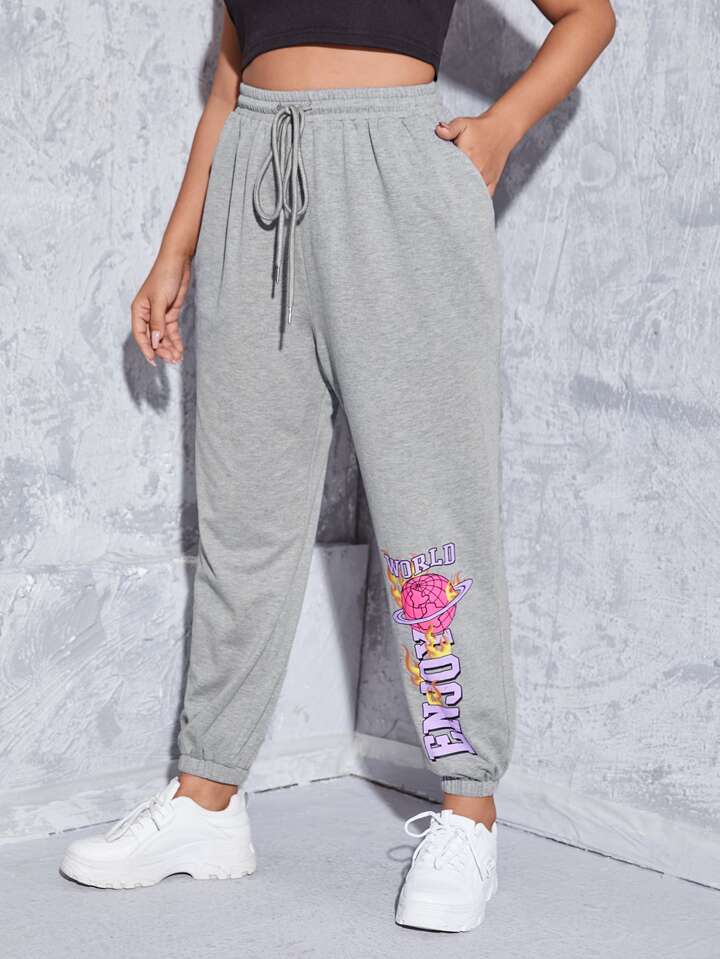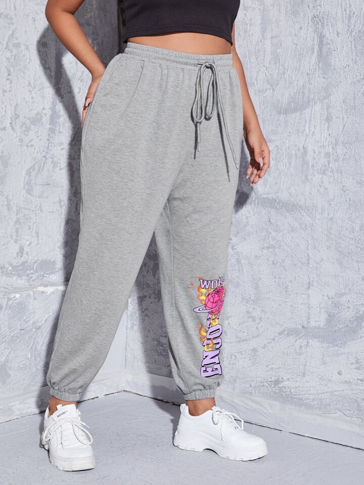 Pantalons de survêtement grande taille Cordon Poche graphique Lettres