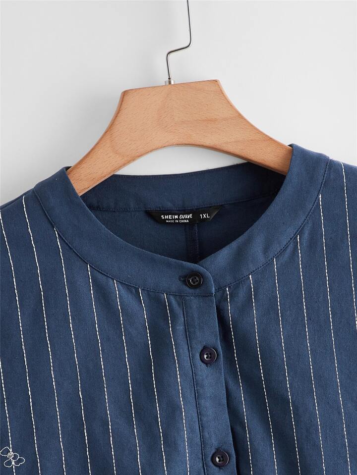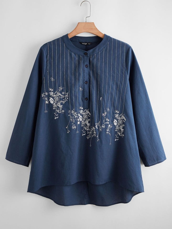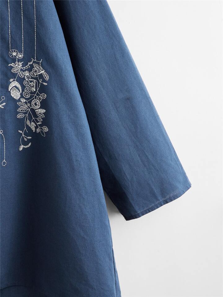Top asymétrique avec broderie fleurie et boutons