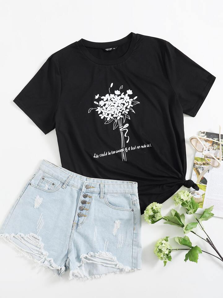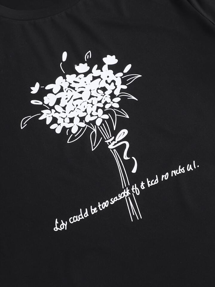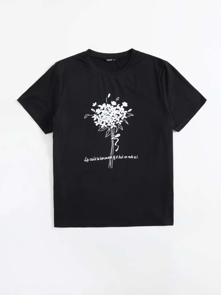 T-shirt avec imprimé fleur et slogan