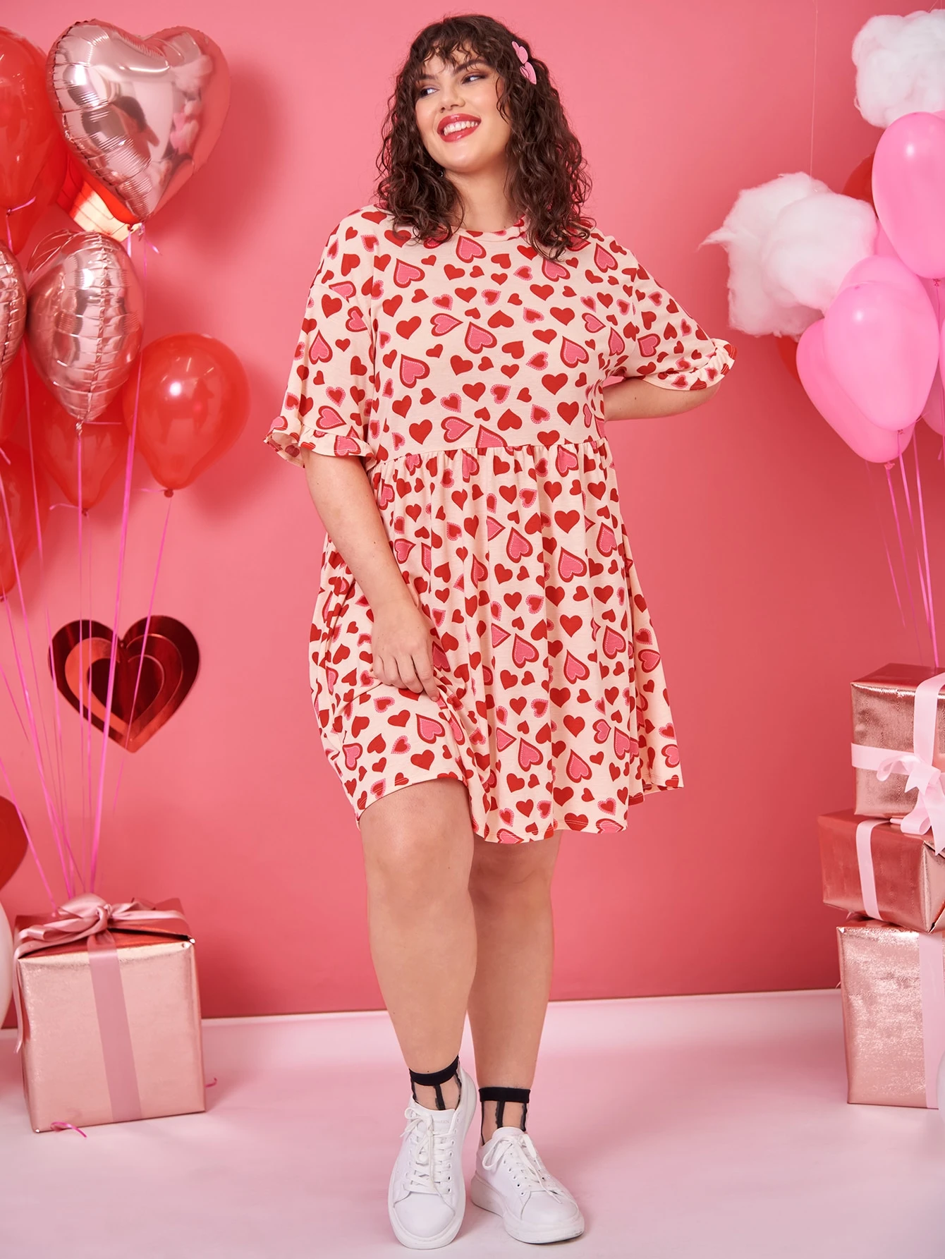 Robe à manches évasées à imprimé cœur