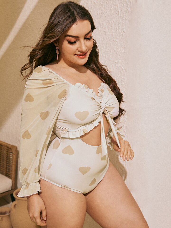 Maillot de bain une pièce avec imprimé cœur et nœud