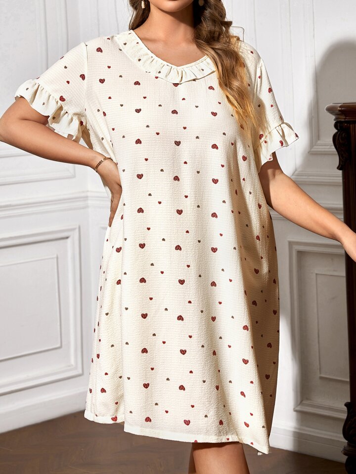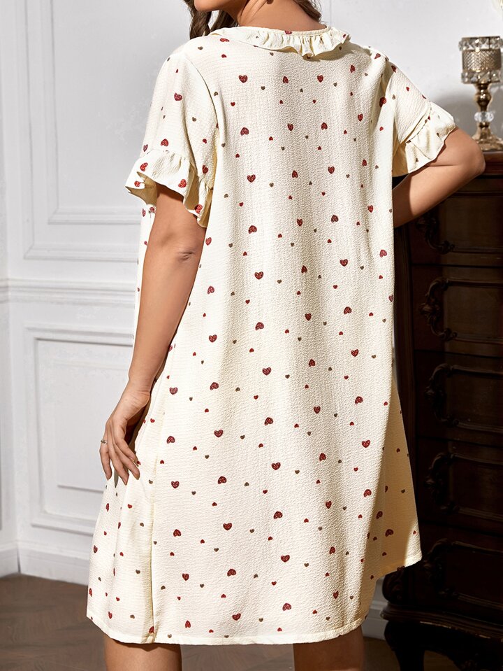 Plus Robe De Nuit Imprimé Cœur À Volants Manches Évasées