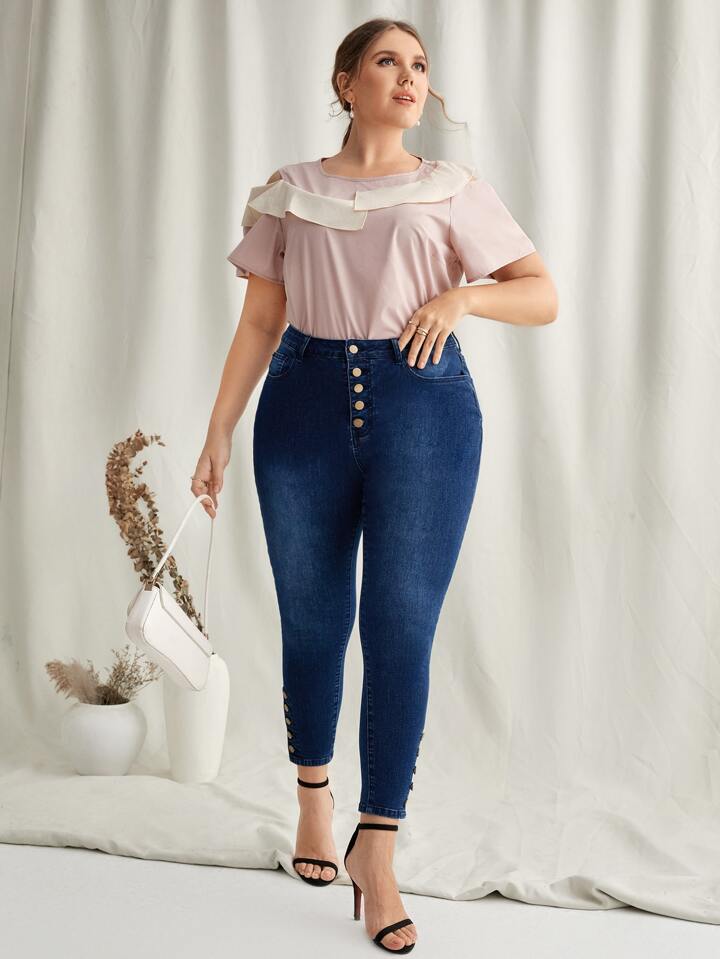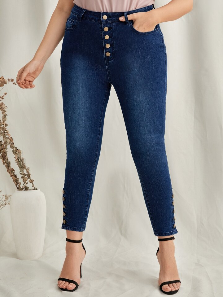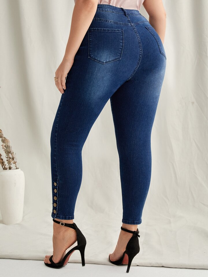 Jean skinny élasticité élevé à bouton