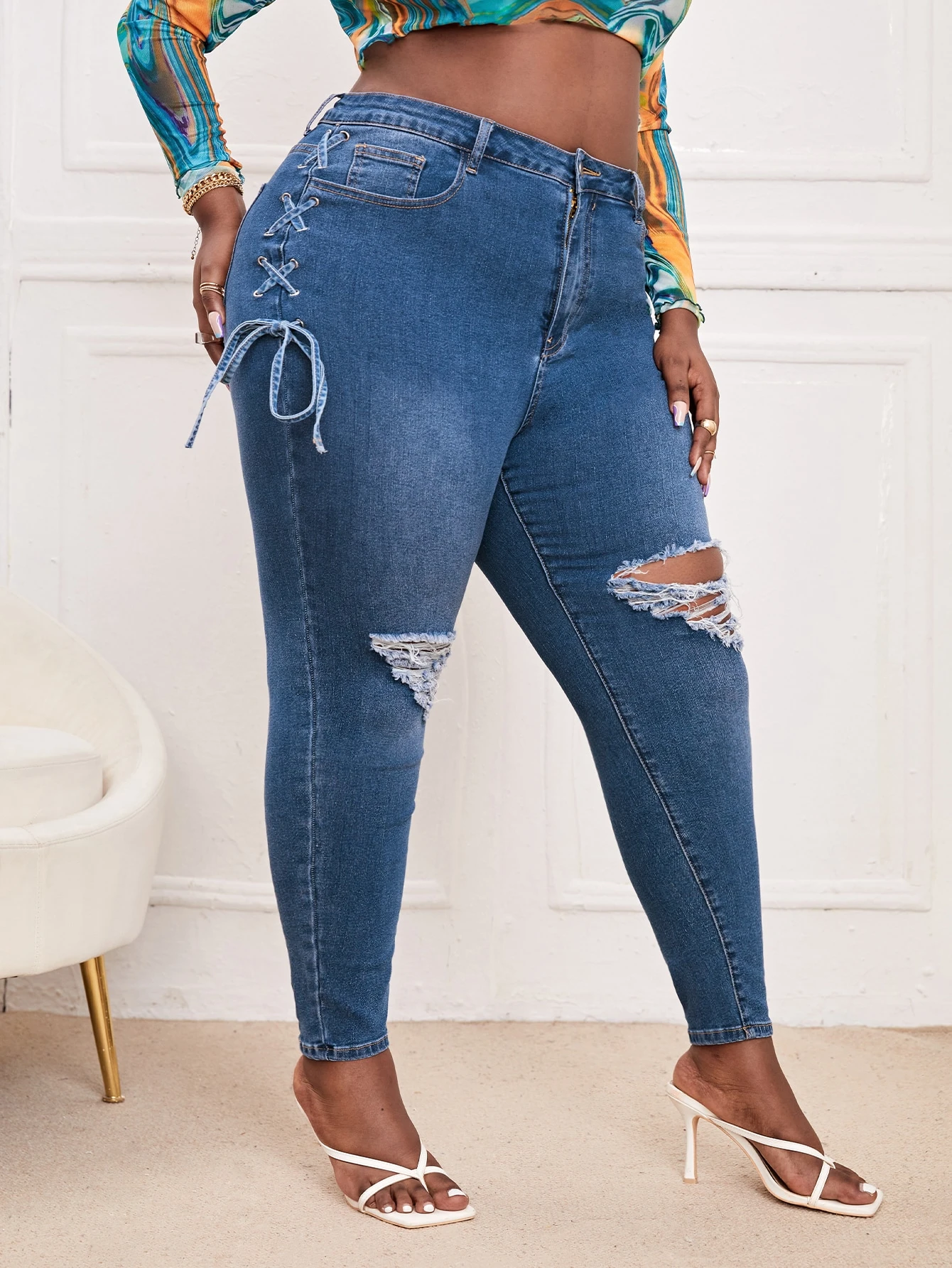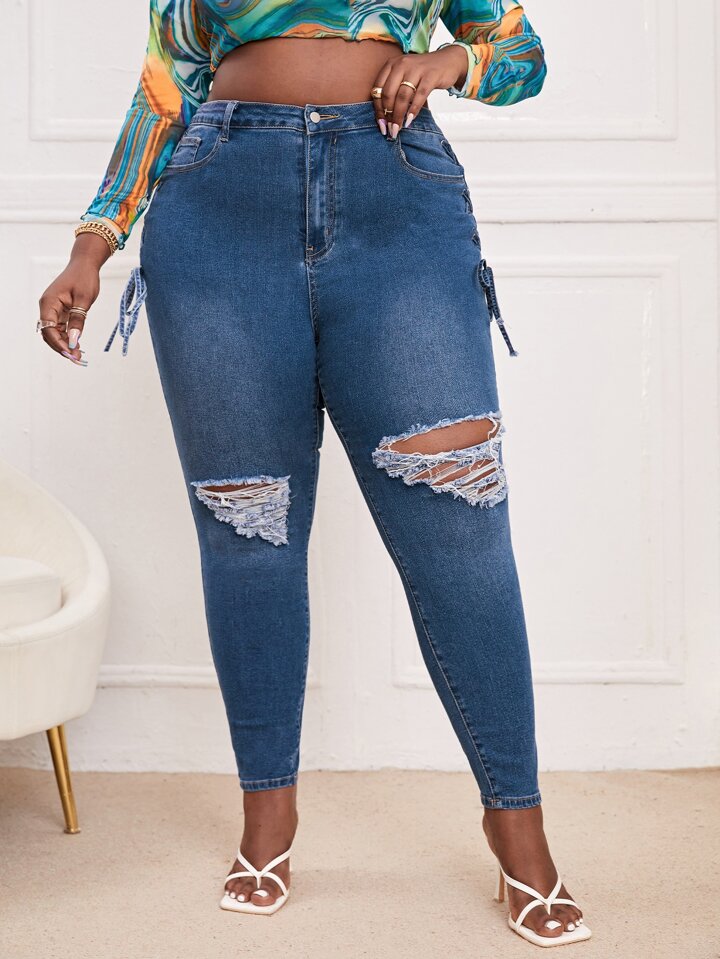 Jean skinny élasticité élevé à lacets