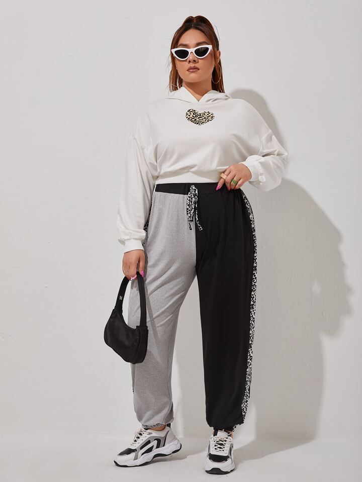 Sweat-shirt à capuche à léopard à imprimé cœur