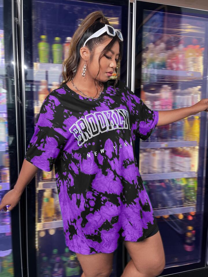 T-shirt ample à manches tombantes avec graphique de lettre et tie-dye, Top d'été pour femmes