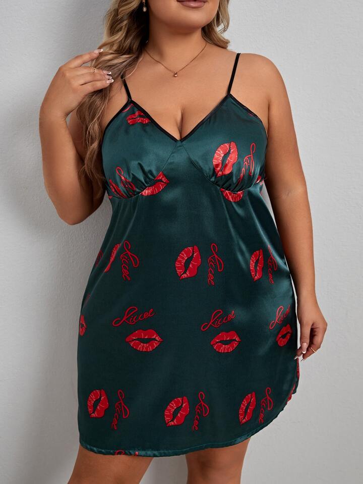 Nuisettes en satin lettre et à imprimé lèvre