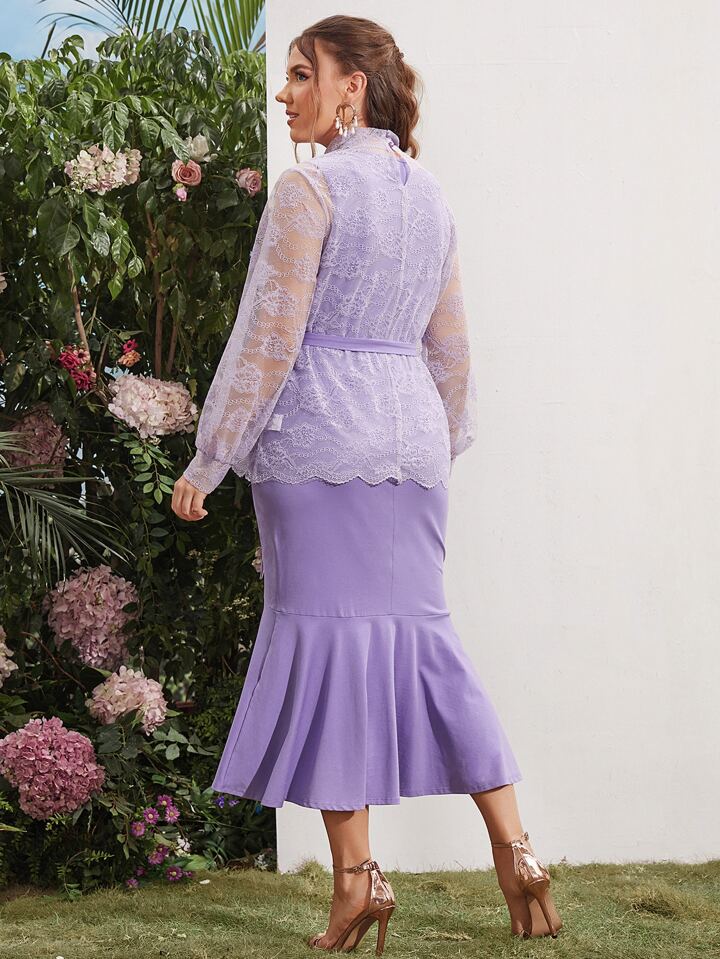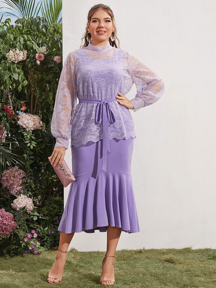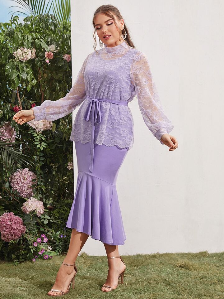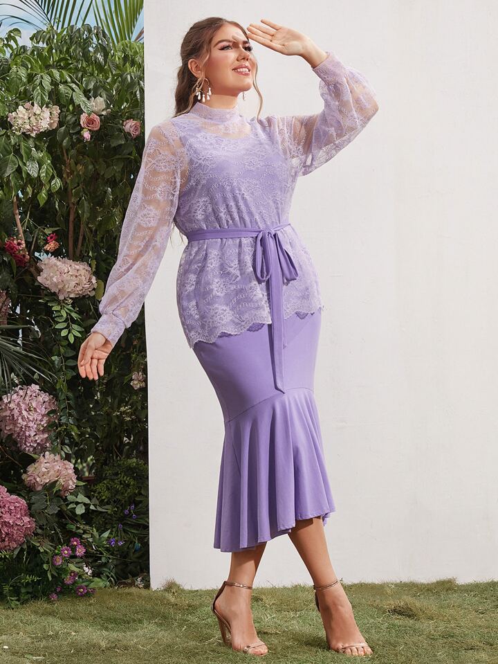 Robe sirène ceinturée avec Top en dentelle
