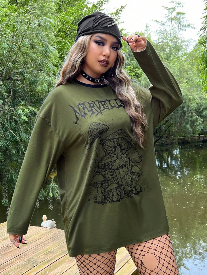 Plus T-shirt Champignon & À Lettres