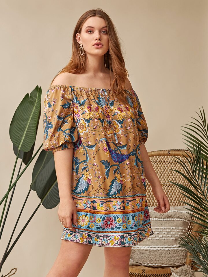 Robe à manches bouffantes à épaules dénudées à imprimé floral