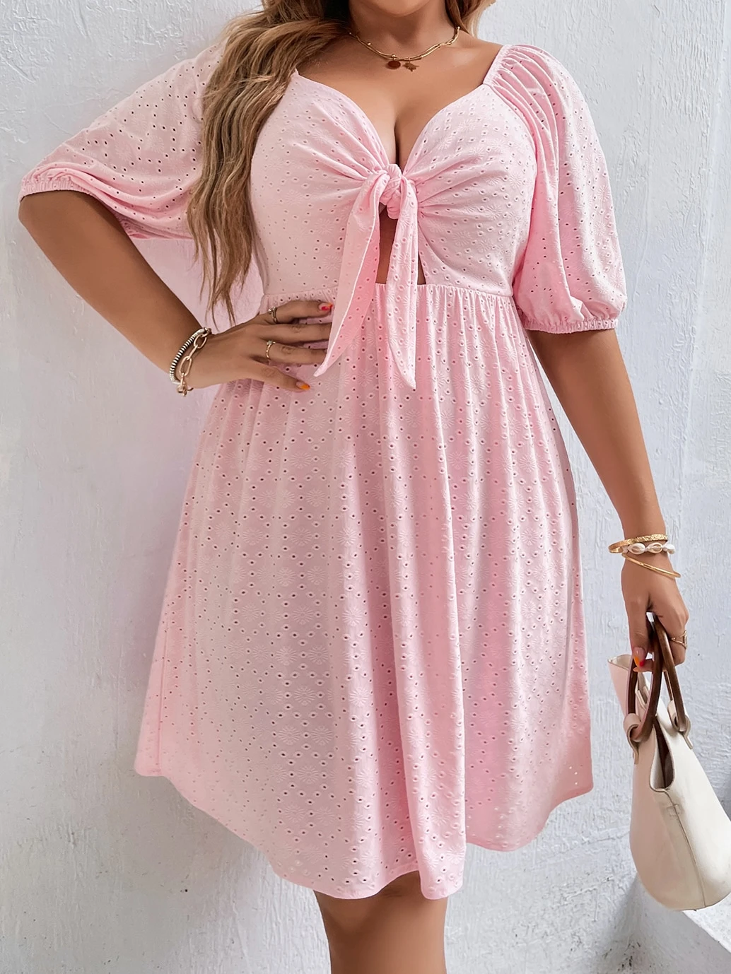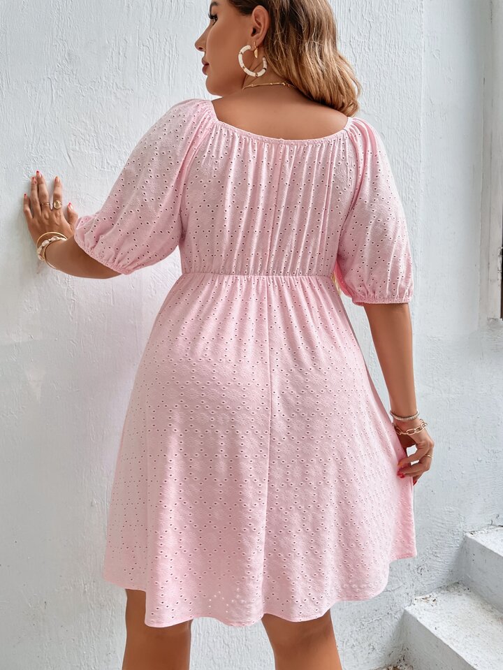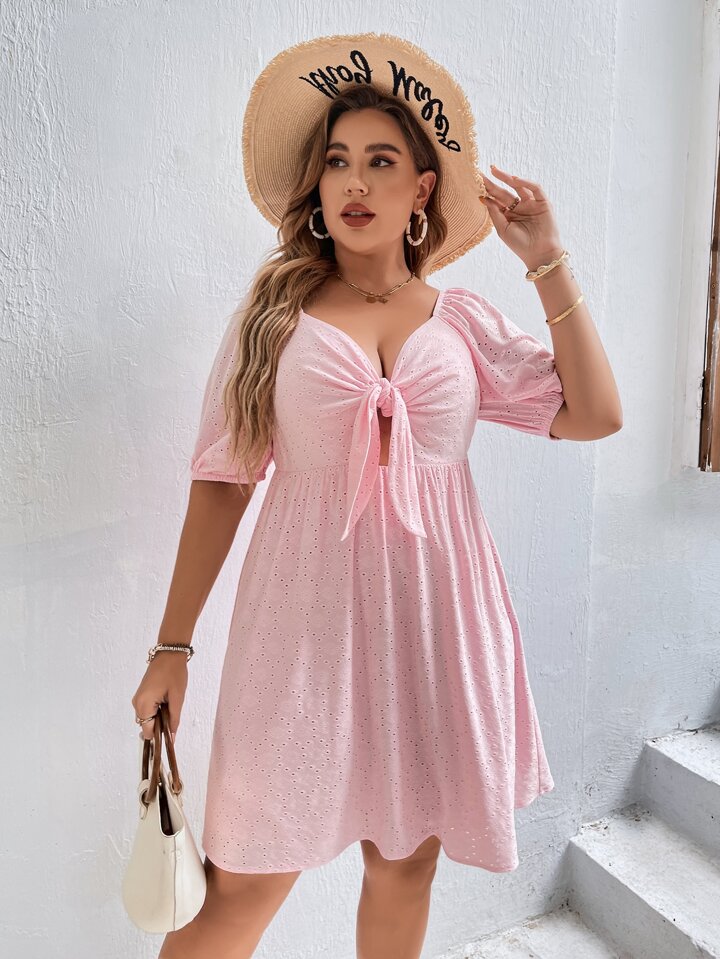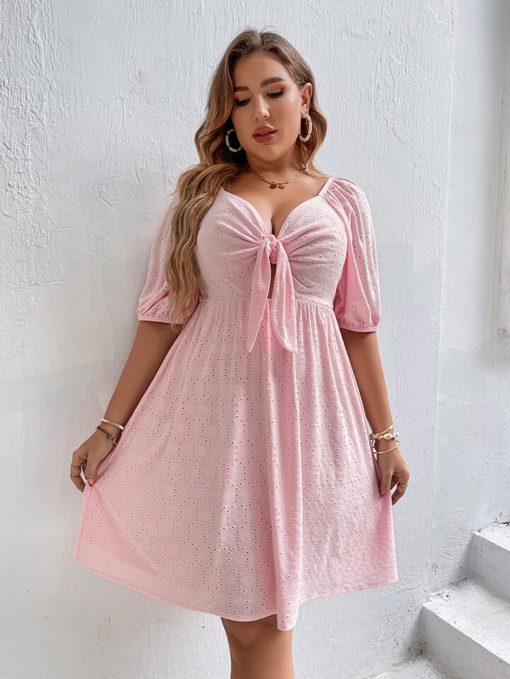 Robe à broderie anglaise manches bouffantes à nœud découpe